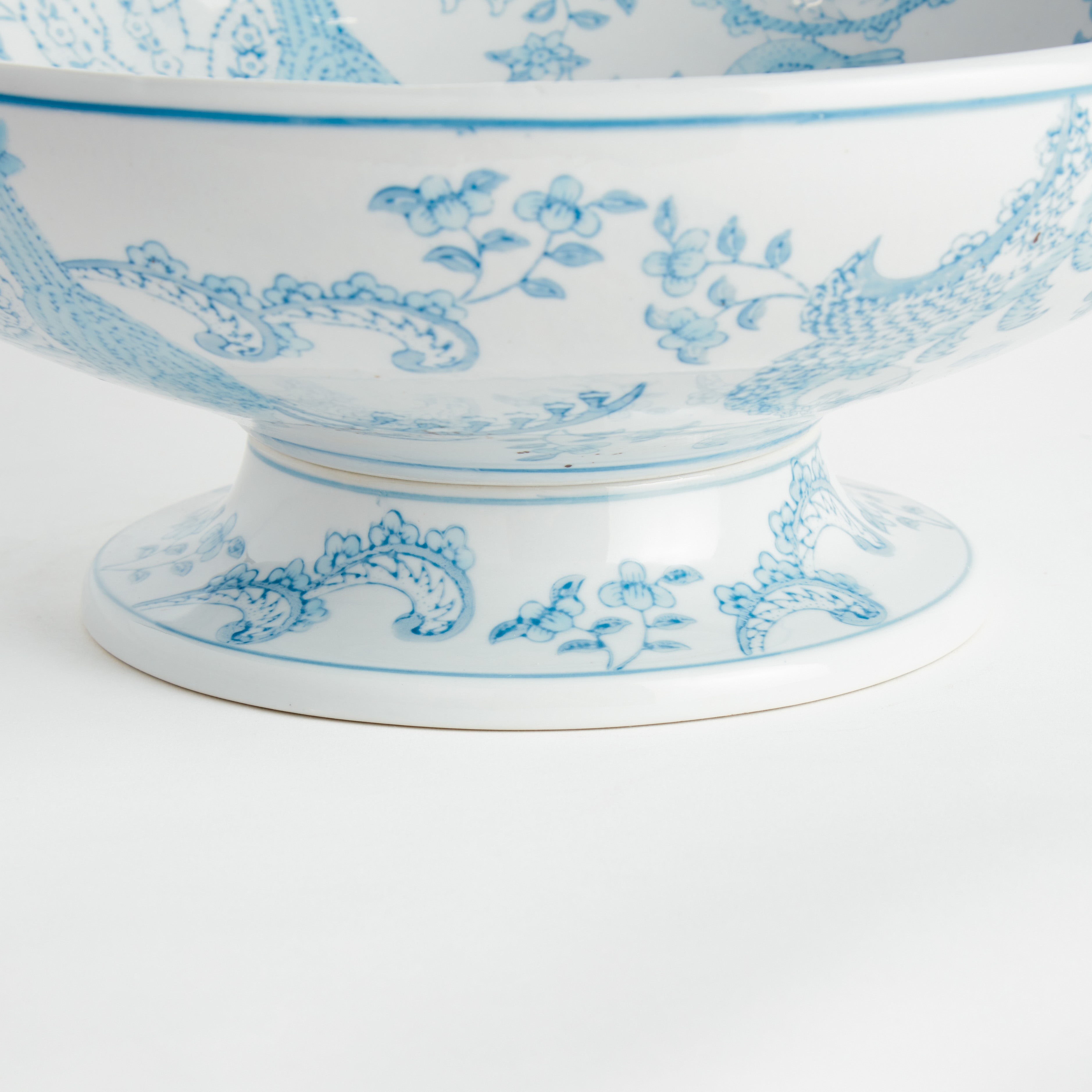 Invite a touch of timeless, chinoiserie-inspired elegance into your home. This exquisite piece celebrates the beauty of nature through detailed artistry, transforming a simple porcelain vessel into a captivating work of art. The bowl features a classic light blue and white color palette, with a beautifully rendered parrot motif that is both hand-painted and hand-stamped, ensuring each piece has its own unique character and charm. Its intricate design and classic colors allow it to blend seamlessly with traditional, coastal, and eclectic decor styles, adding a layer of curated refinement to any space. It’s more than just a bowl; it’s a conversation piece that brings artistic flair and a whisper of the tropics to your interior.