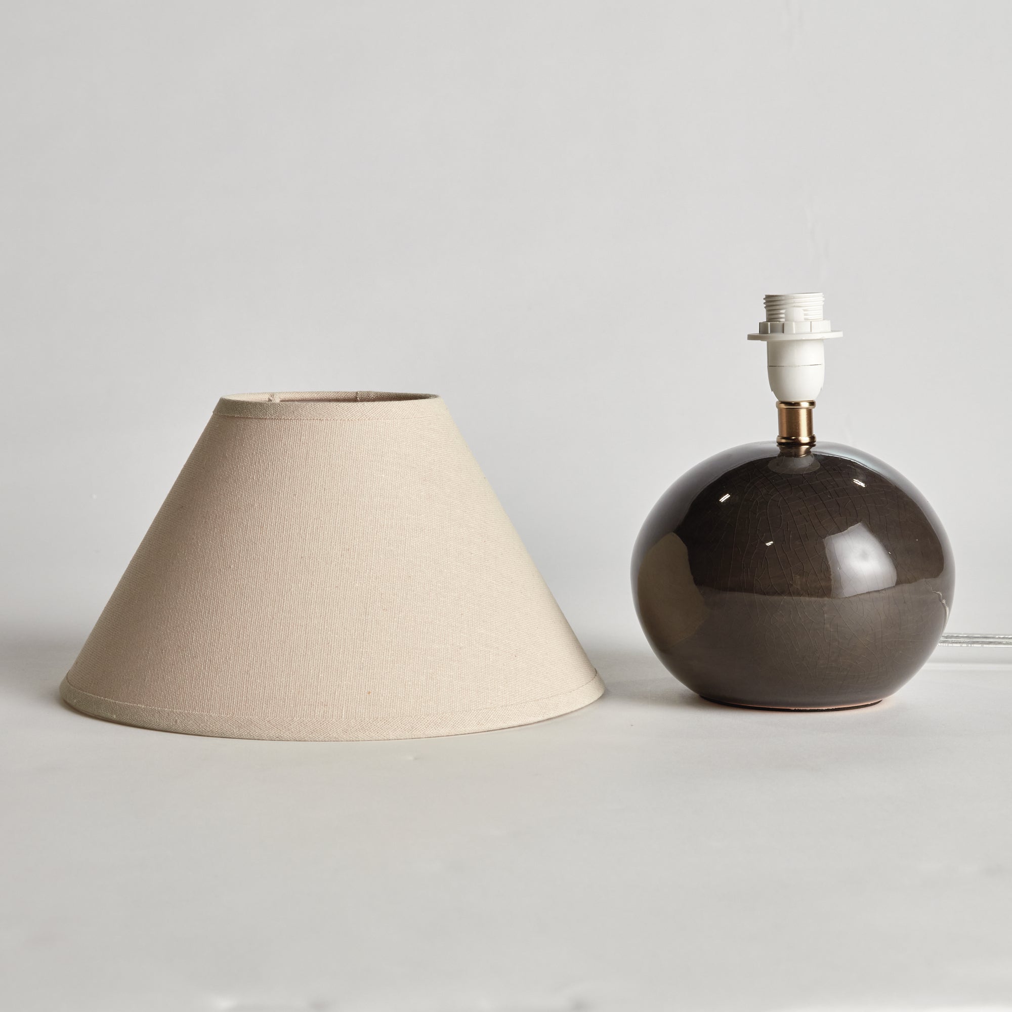 With a blue crackle glazed body and light linen shade, this lamp is a handsome fixture. At just around 10 inches tall, it's perfect for home office desk, side table or even a narrow console or dresser. -Gray; -Ceramic/linen; -Dust with dry cloth Product Dimensions 9.75 x 9.75 x 11 Product Weight 2.2