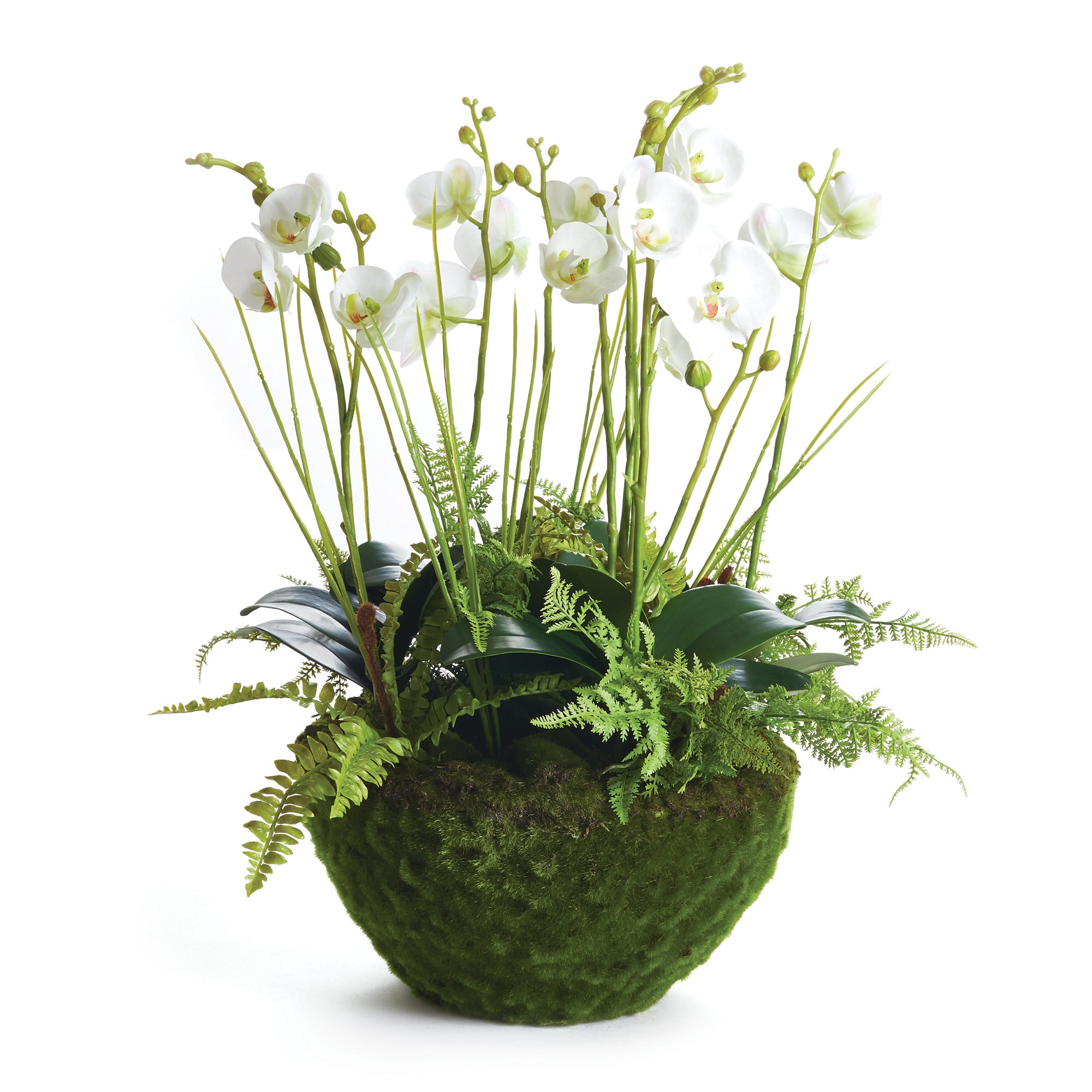 The phalaenopsis and Fern drop-in is a more casual approach to the traditional drop-in. Place in a feature bowl, or on it's own for a touch of green in any space.