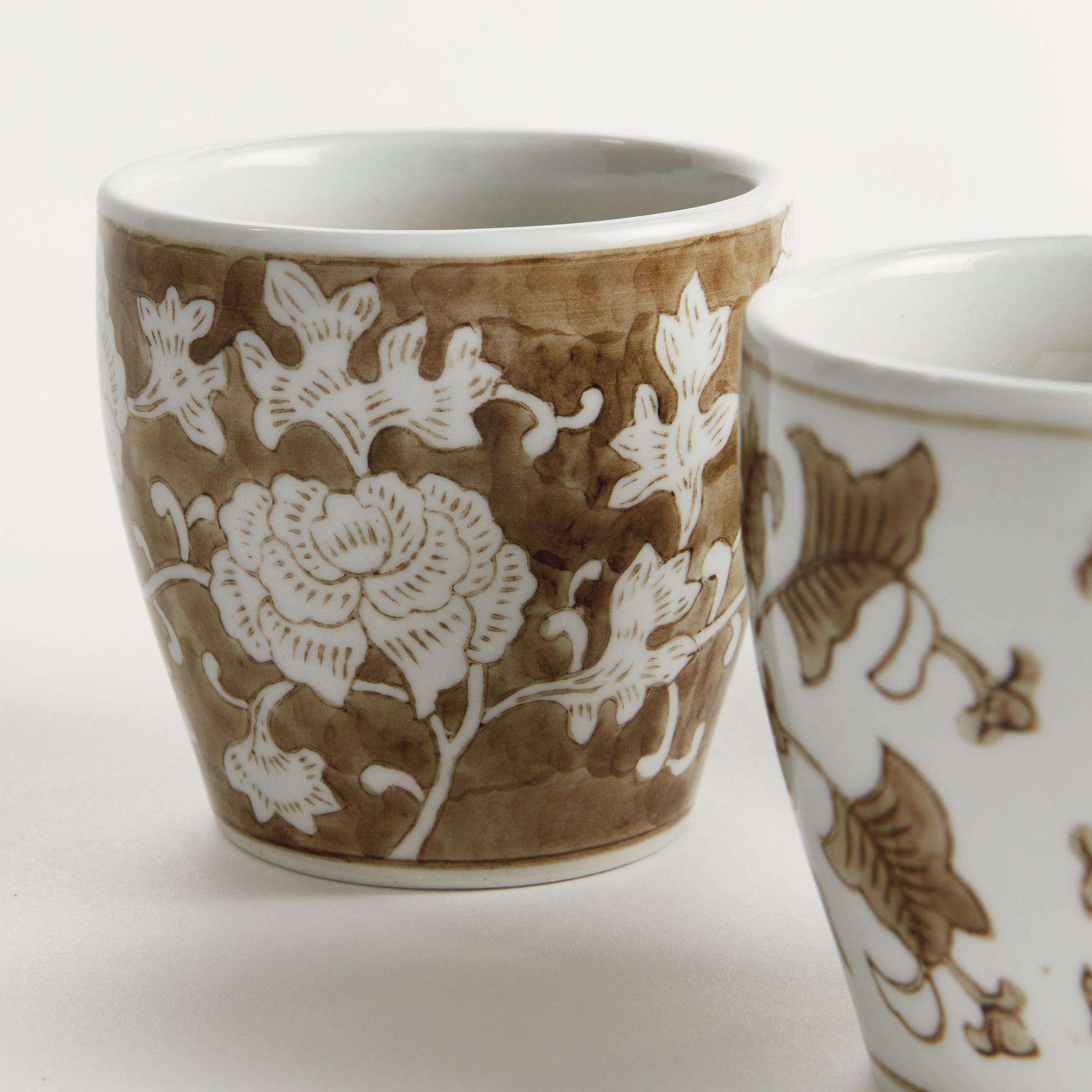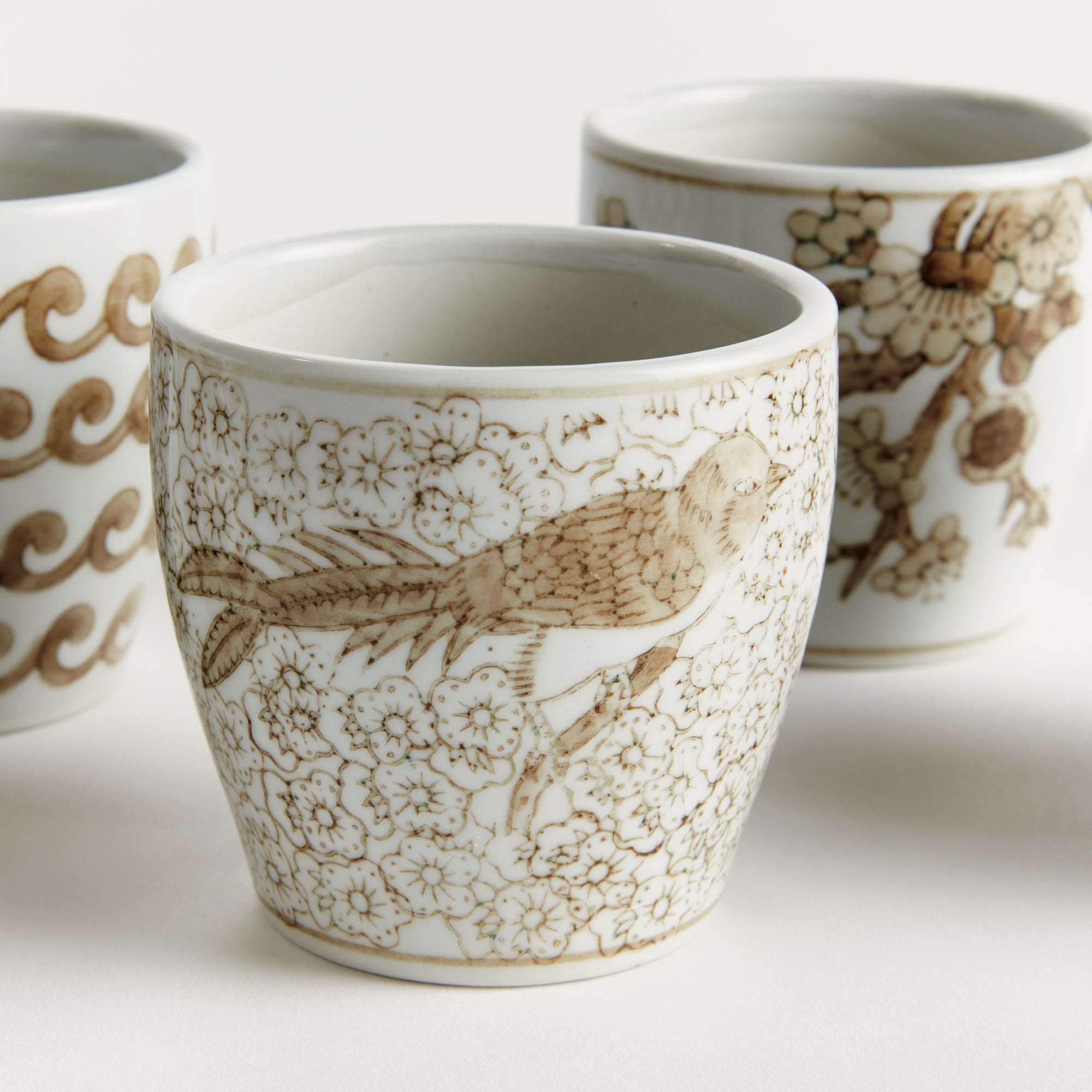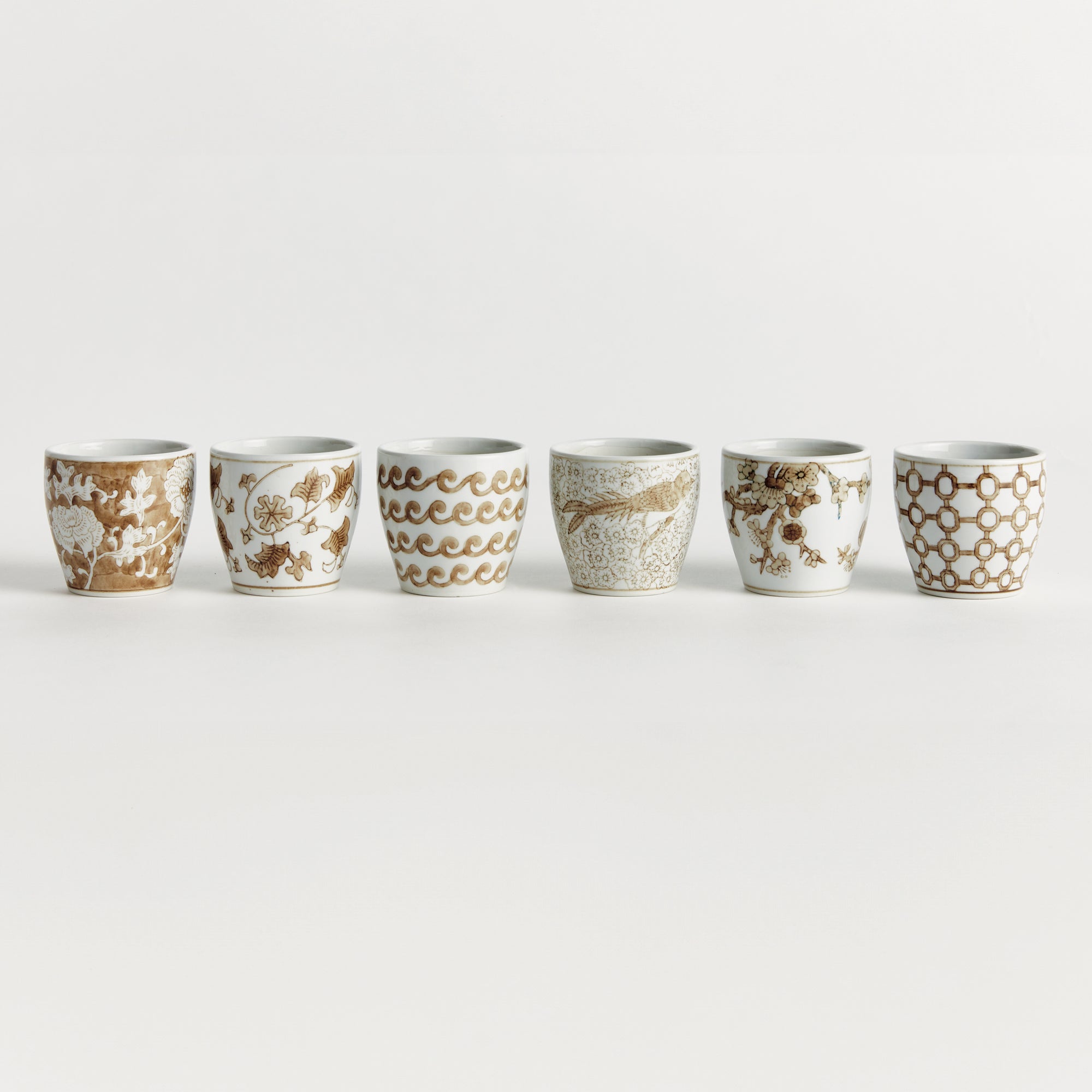 A classic chinoiserie-inspired link pattern in taupe and white. In design, taupe is often associated with muted, sophisticated qualities. It evokes balance and timelessness. A tone that plays well in any palette, and is an inspired design choice for this set of six mini pots. A beautiful complement to your favorite little blooms.