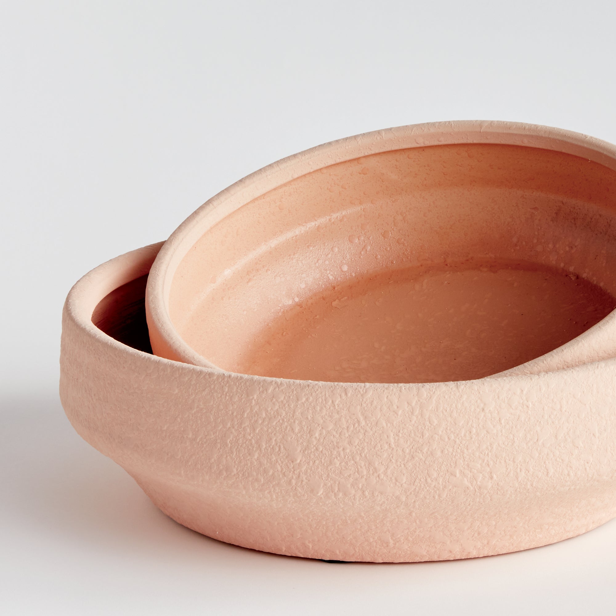 Handcrafted by skilled artisans, each piece is an original and varies in size and color. Dust with dry cloth. Protect fine furniture by lining the interior of the pottery when necessary. Decorative interior use only.