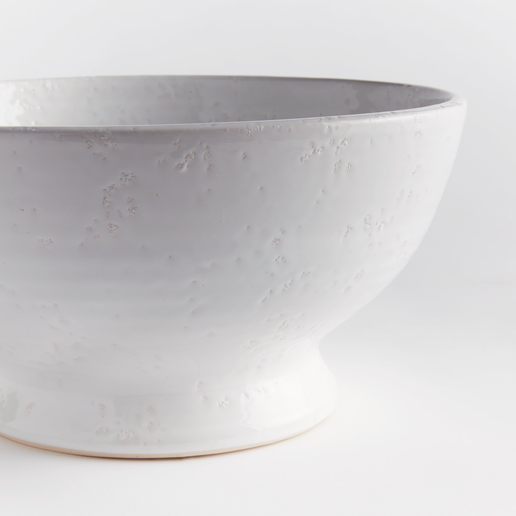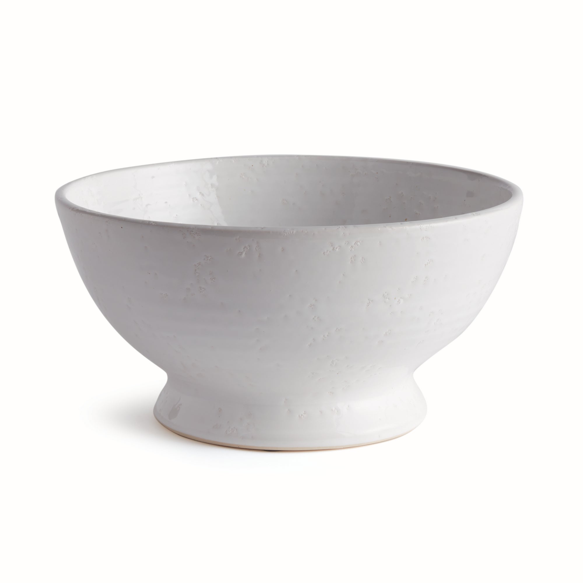 Subtle throw lines and natural textures from the firing process give this terracotta bowl a vintage look. Finished in a warm white glaze, it is beautiful displayed as is, or add a few natural orbs for added texture and color.