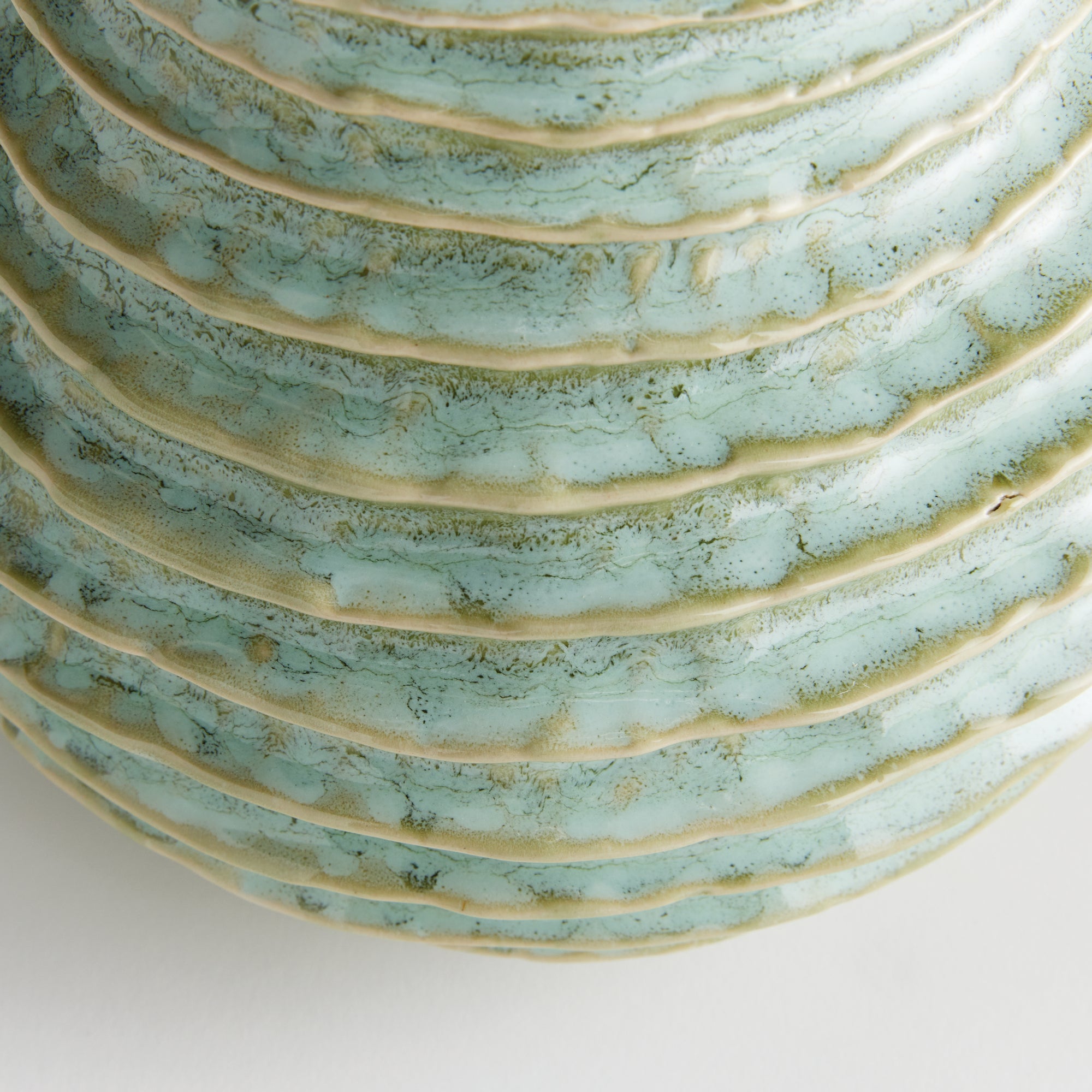 With a reactive glaze and hand finished ribbing detail, this charming sage green vase is a great find. Add a few faux stems or display as is for a simplified look.
