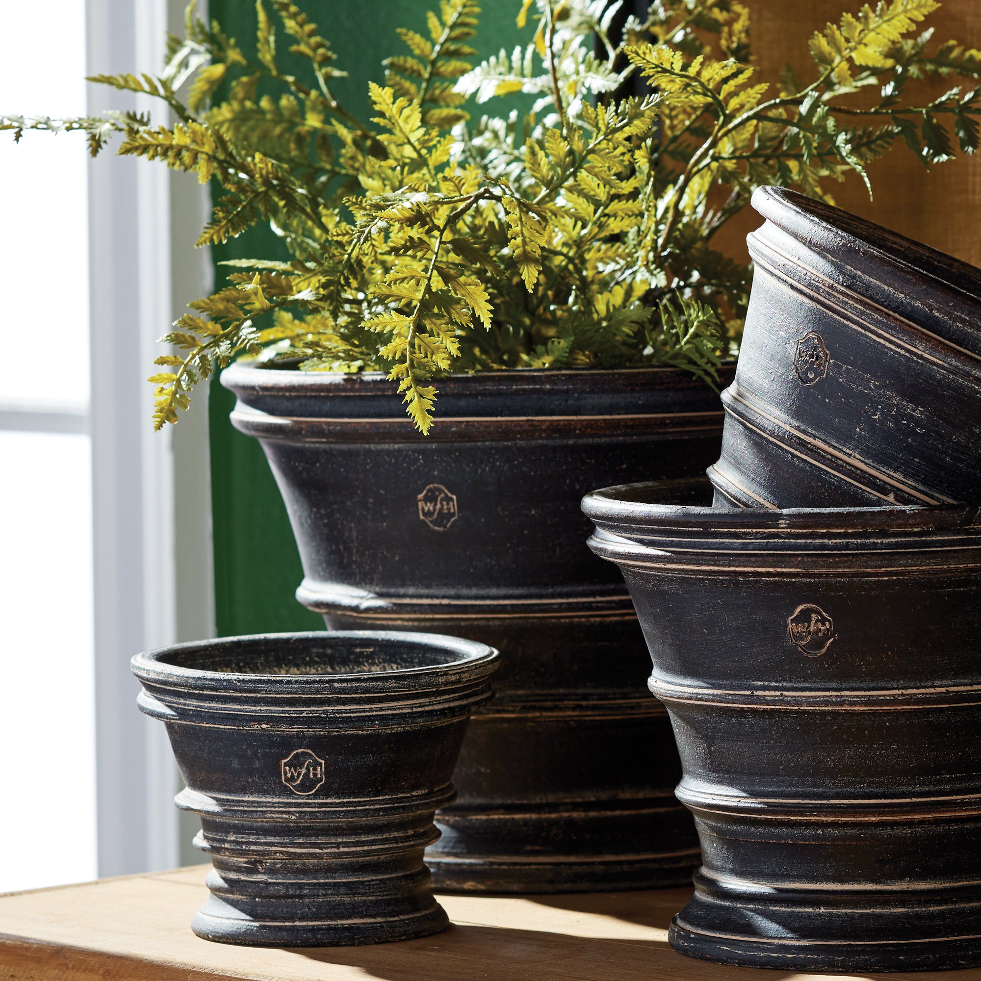 Use as cachepot or plant directly into. Protect fine furniture by lining interior of pot. Protect from frost and hard freeze.