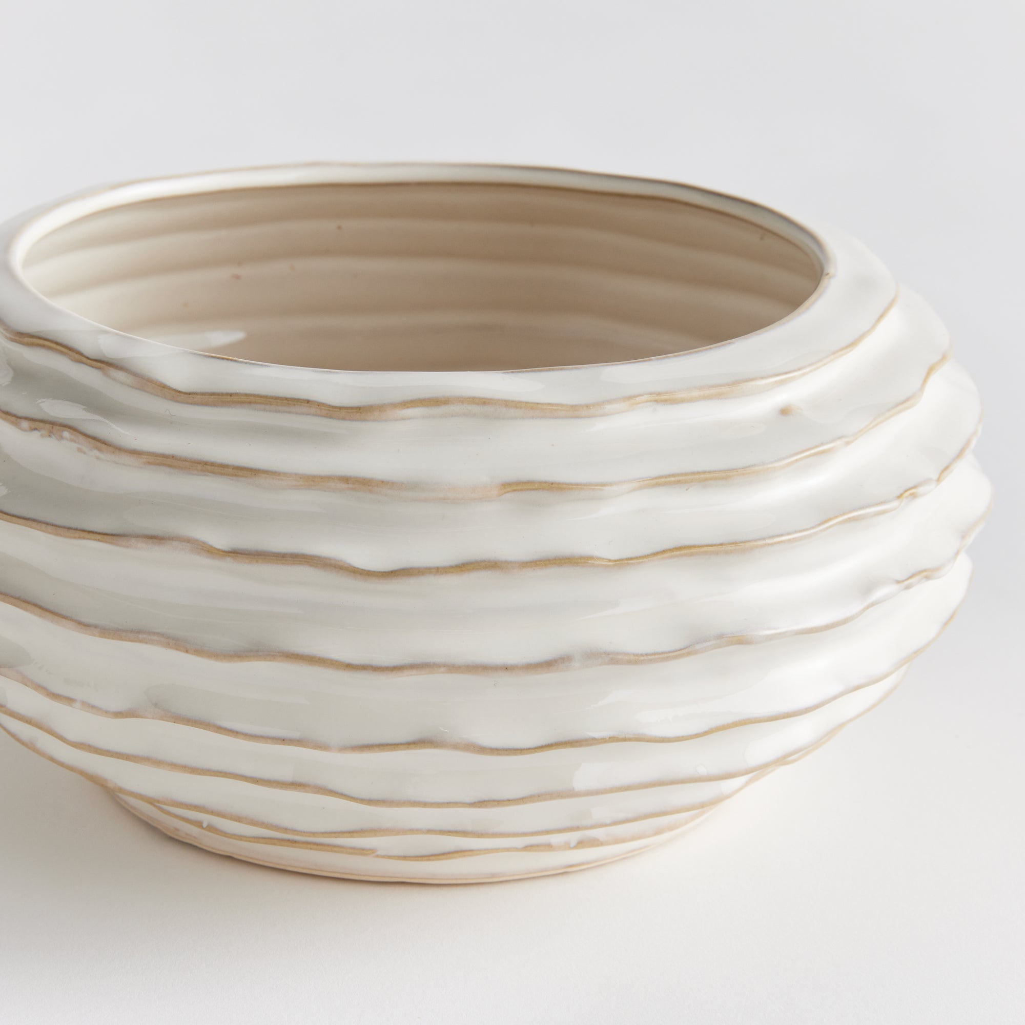 With a reactive glaze and hand finished ribbing detail, this charming bowl is a great find. Add some decorative orbs or display as is for a simplified look.