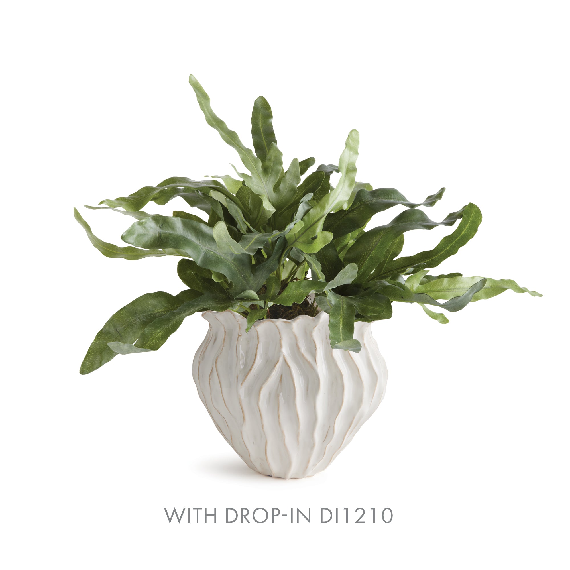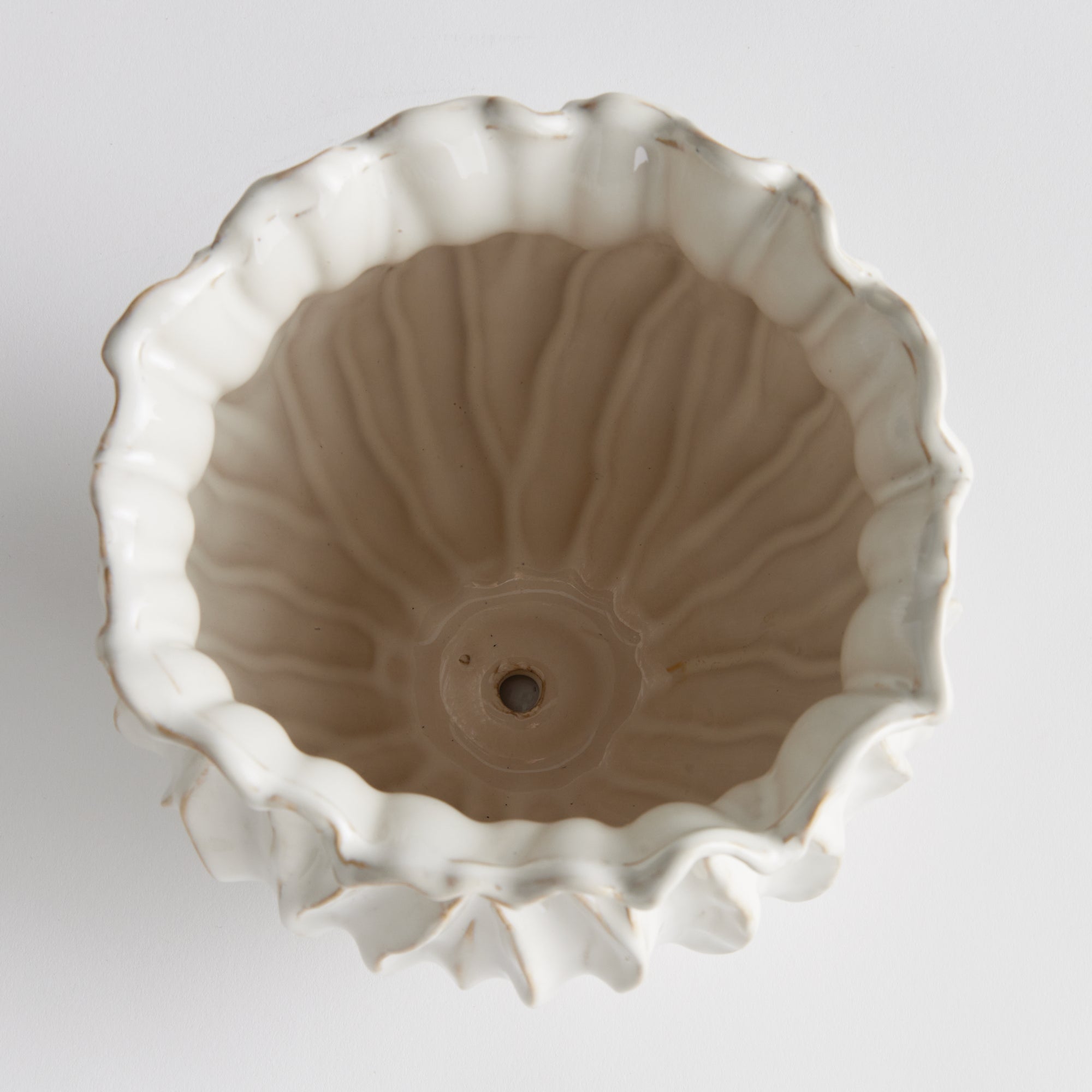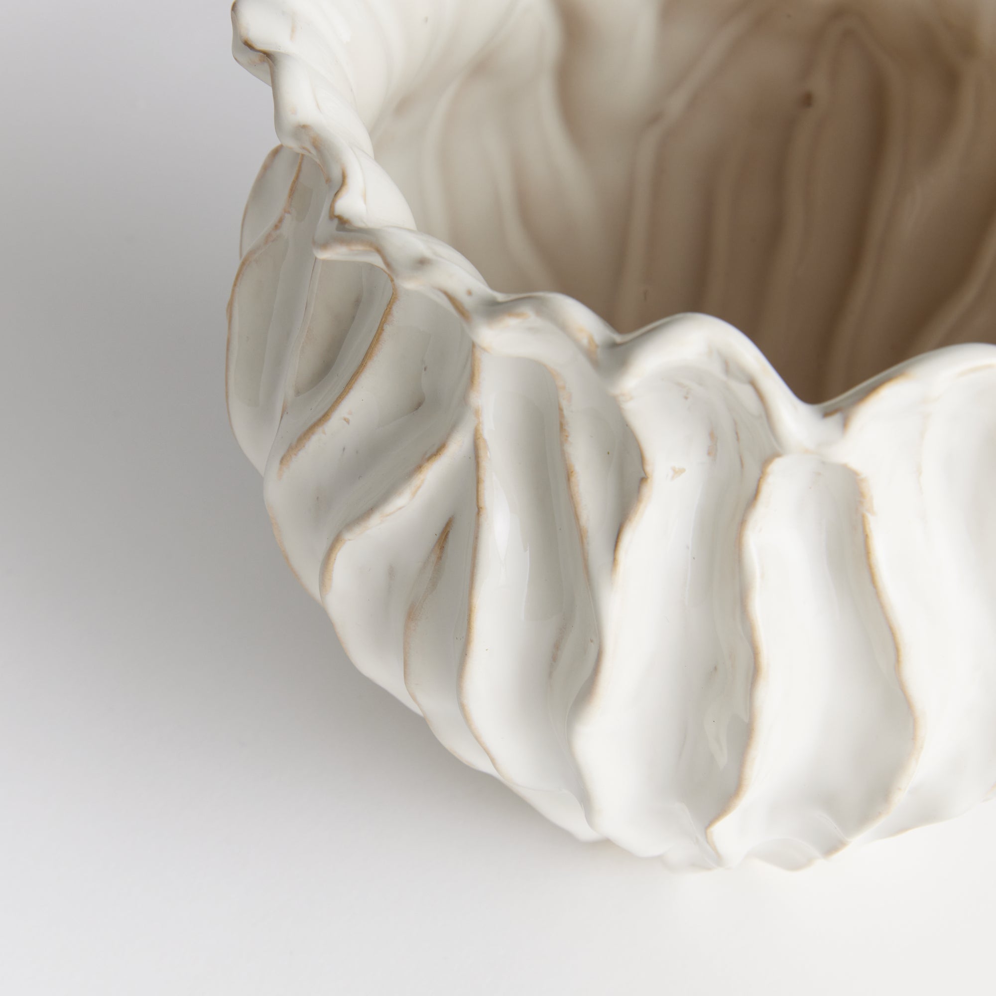 With a sculpted body and thickly-applied reactive glaze, this sculptural pot is a work of art. The hand-finished details give it an artisan's touch. Add a lush green plant or delicate orchid and enjoy. Simply gorgeous.