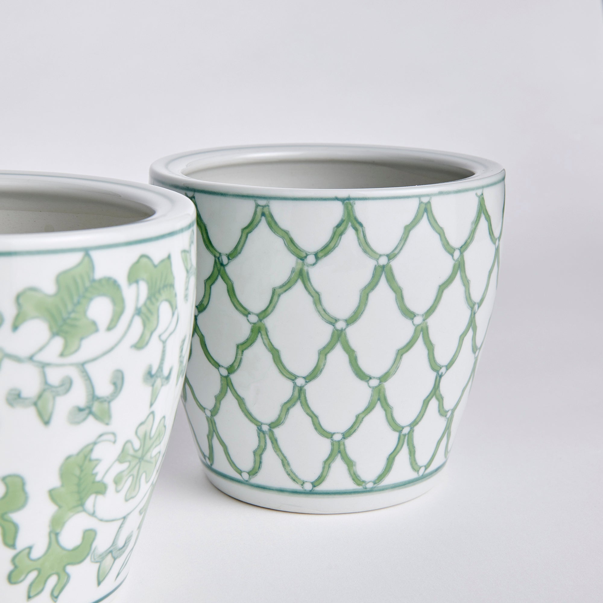 A classic chinoiserie in shades of green. How refreshing! The color green is known to have a harmonizing, balancing effect, so is an inspired design choice for the coordinating Imperial Mini Pots. A welcome addition, bringing stability and calm to the well-appointed kitchen, study or covered porch.