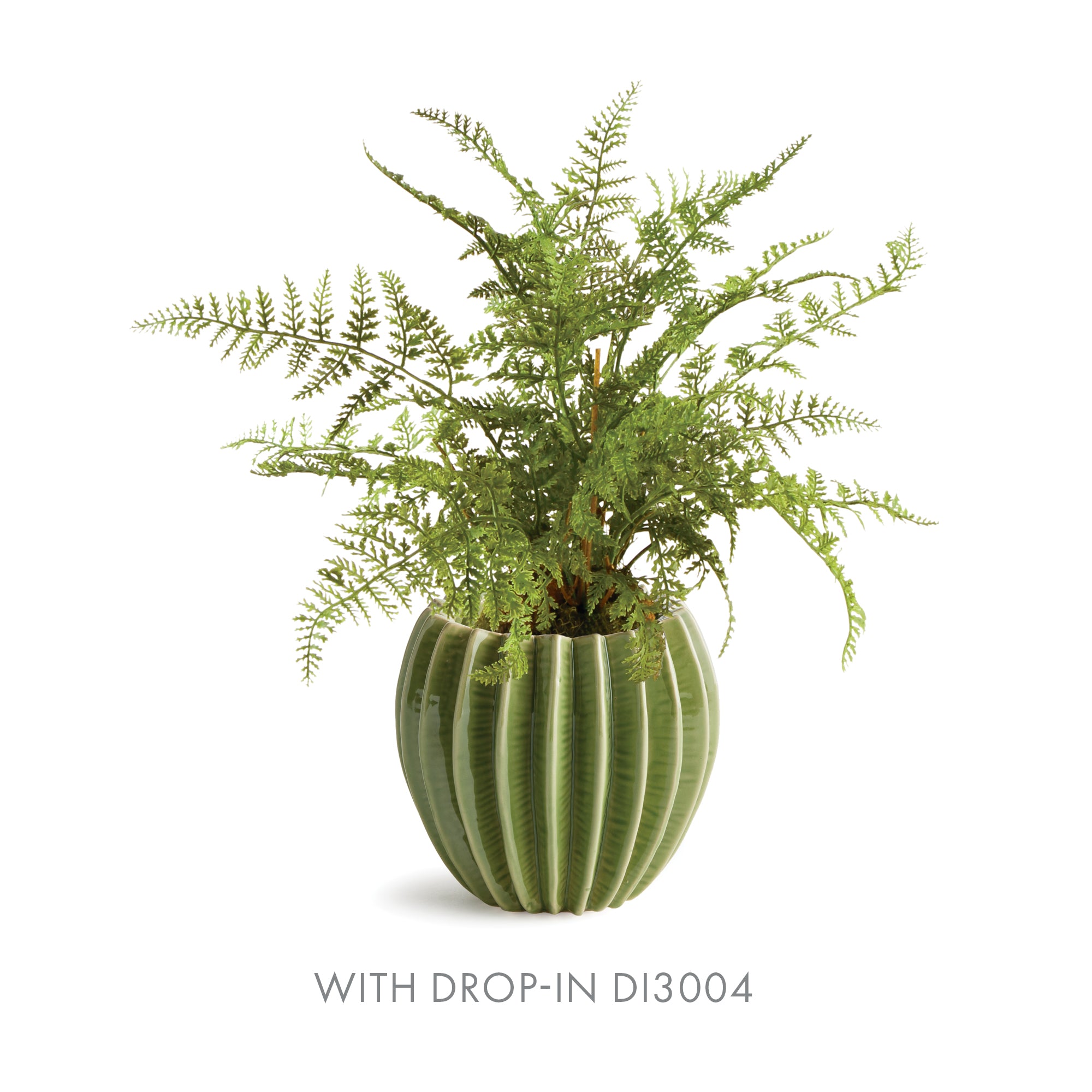 With a rounded form, deep ribbing and thickly applied glaze, this nature-inspired pot is a work of art. The hand-finished details give it an artisan's touch. Add a lush green plant or delicate orchid and enjoy. Simply gorgeous.
