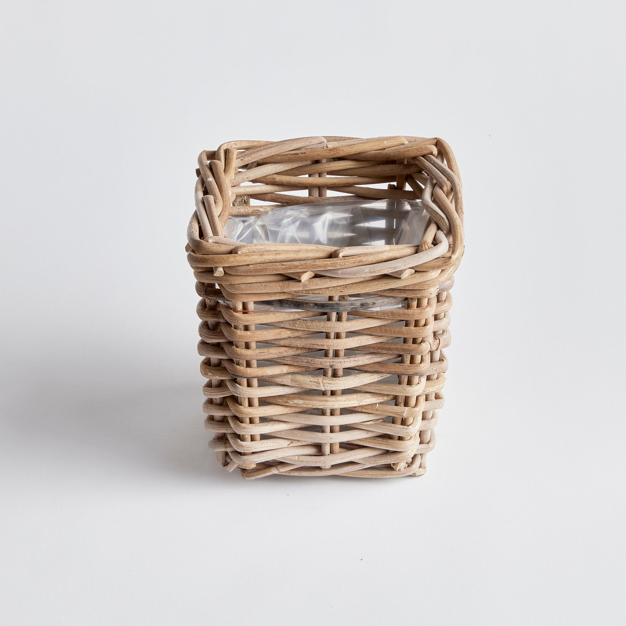 Woven in all-natural rattan, this simple square planter is a sweet little beauty. Complete with a plastic liner, plant your favorite lush greens or florals directly in & watch them flourish!