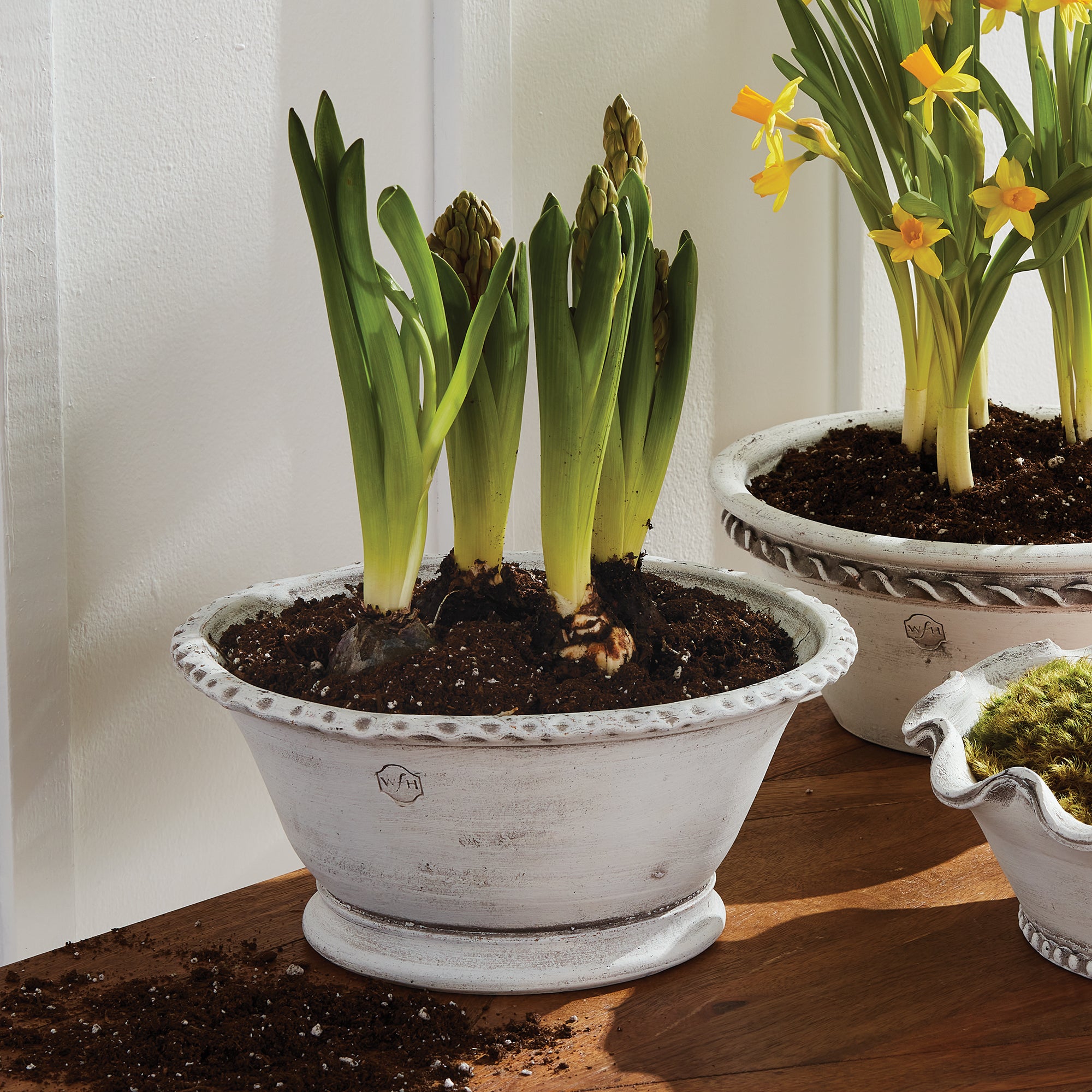 This signature pot was created for forcing bulbs in winter, specifically for amaryllis, paperwhites, snowdrops, crocus, hyacinths, daffodil or tulips. Designed by master potter Peter Wakefield, one of an exclusive set and handmade in Honduras. Add a glass cloche to aid in the forcing process, and garden just like a master!
