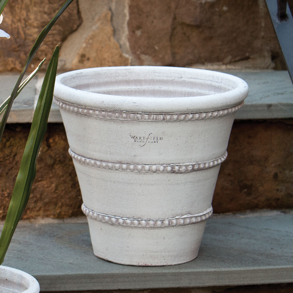 Use as cachepot or plant directly into. Protect fine furniture by lining interior of pot. Protect from frost and hard freeze.