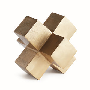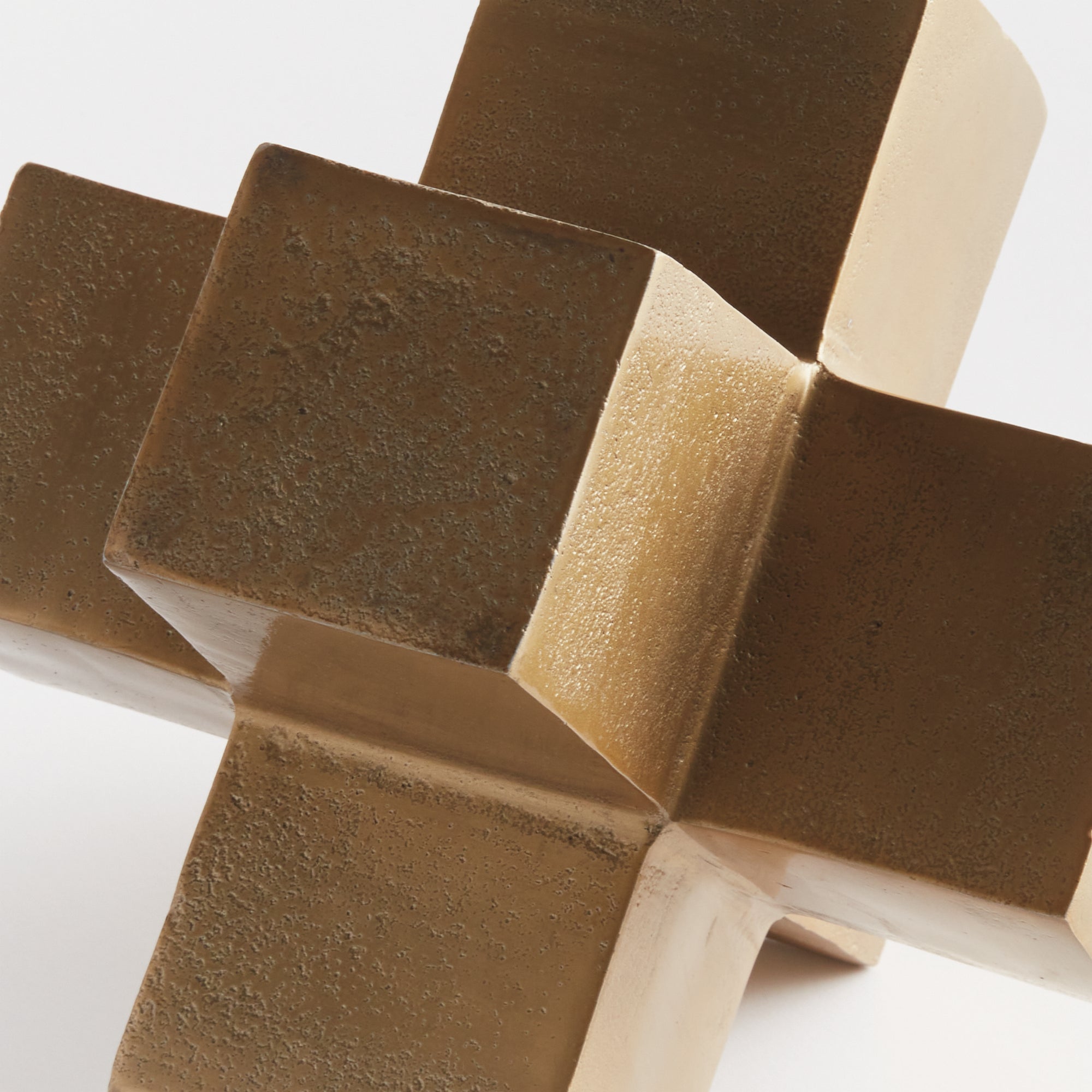 A geometric marvel, this three-dimensional plus sign sculpture is a bold accent in a warm gold finish. Place atop a stack of books or nestled in a bookshelf for a modern touch.