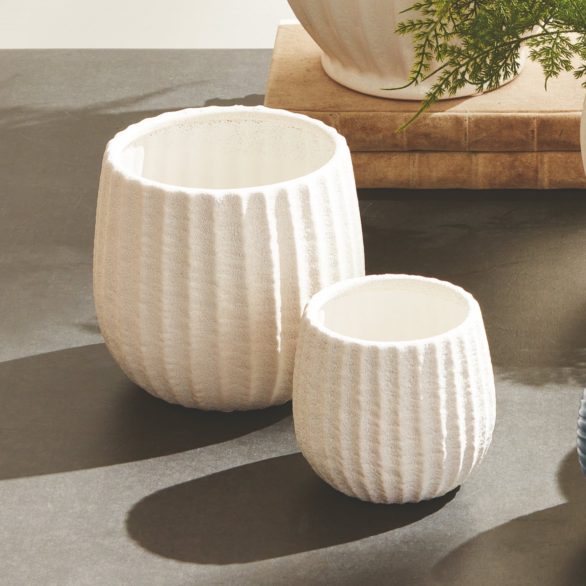 Use as cachepot or plant directly into. Protect fine furniture by lining interior of pot. Protect from frost and hard freeze.