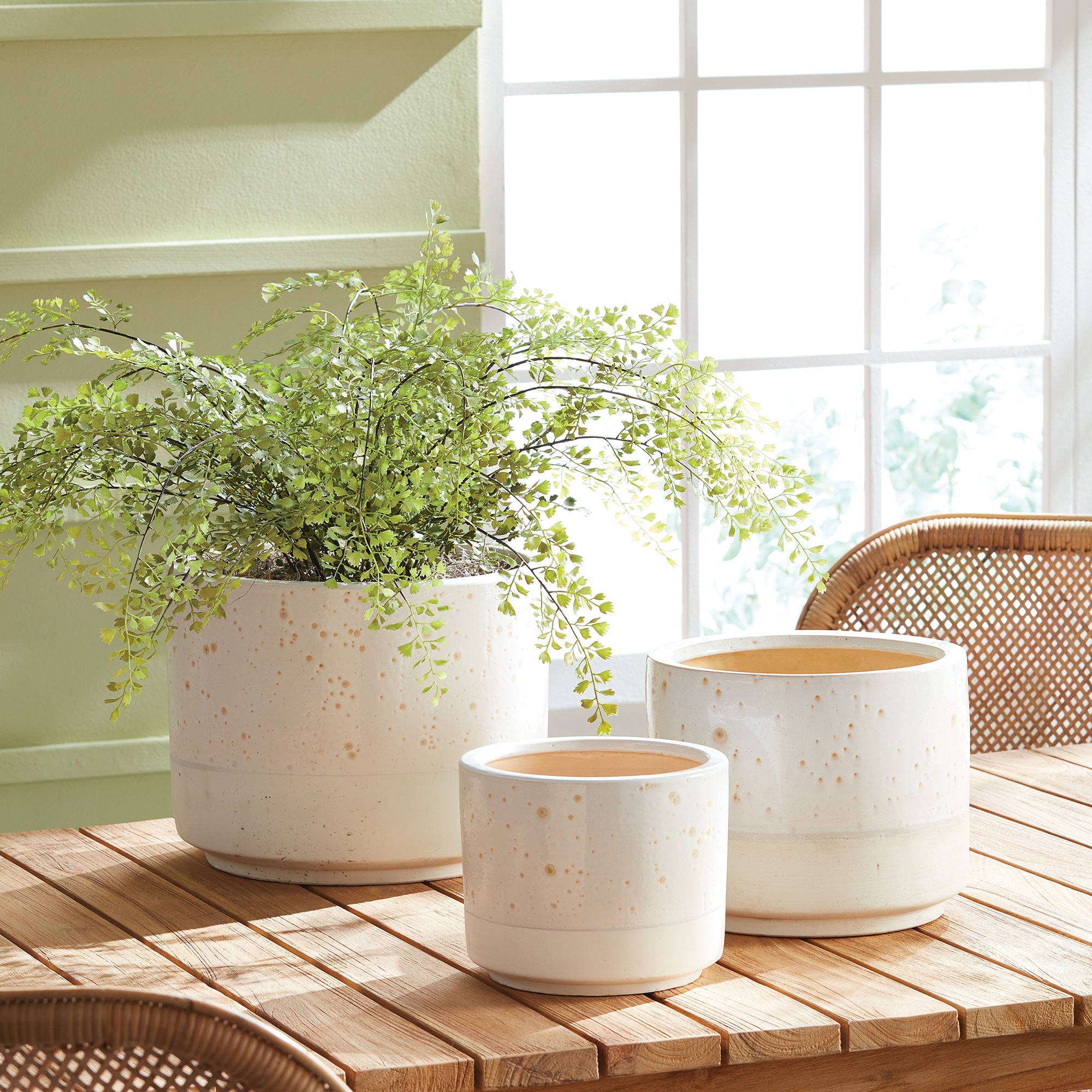 Use as cachepot or plant directly into. Protect fine furniture by lining interior of pot. Protect from frost and hard freeze.