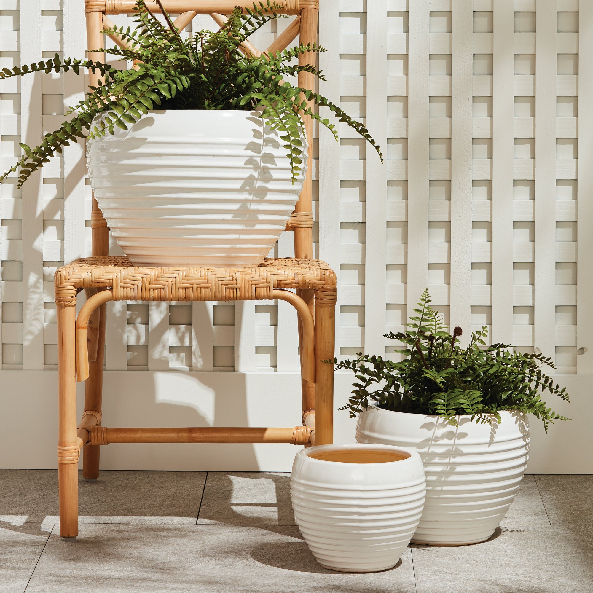 We know you'll just love this set. The tall shape you need for largescale planting, and the rich white glaze and ribbed patterns for an upscale feel.