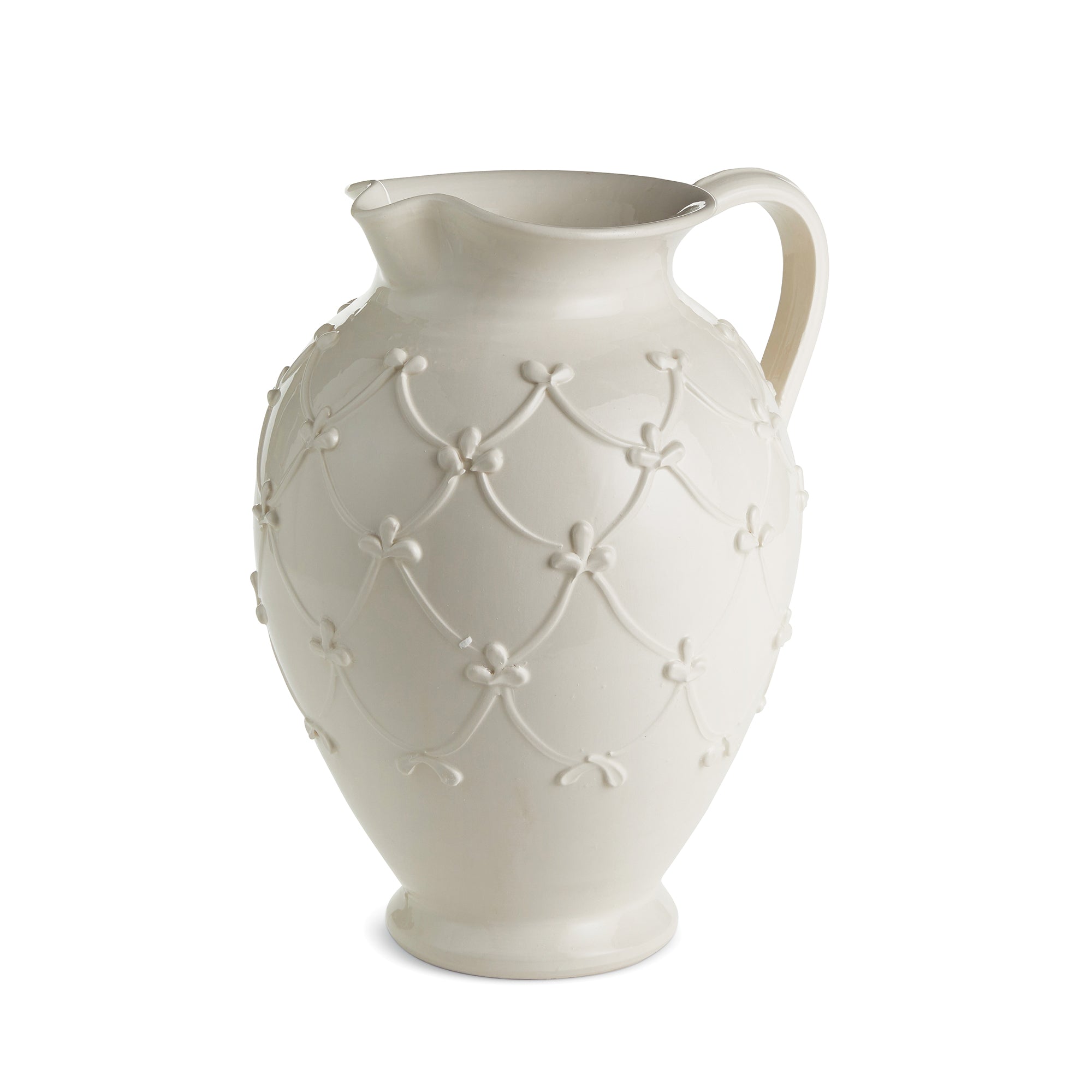 This lattice adorned decorative pitcher is made by hand in Tuscany, Italy. With a classic Italian craftsmanship passed down through generations of artisans, each piece is a true original. The warm, glossy white glaze adds a neutral touch. The perfect accent for a feature table, entry console or bookshelf.