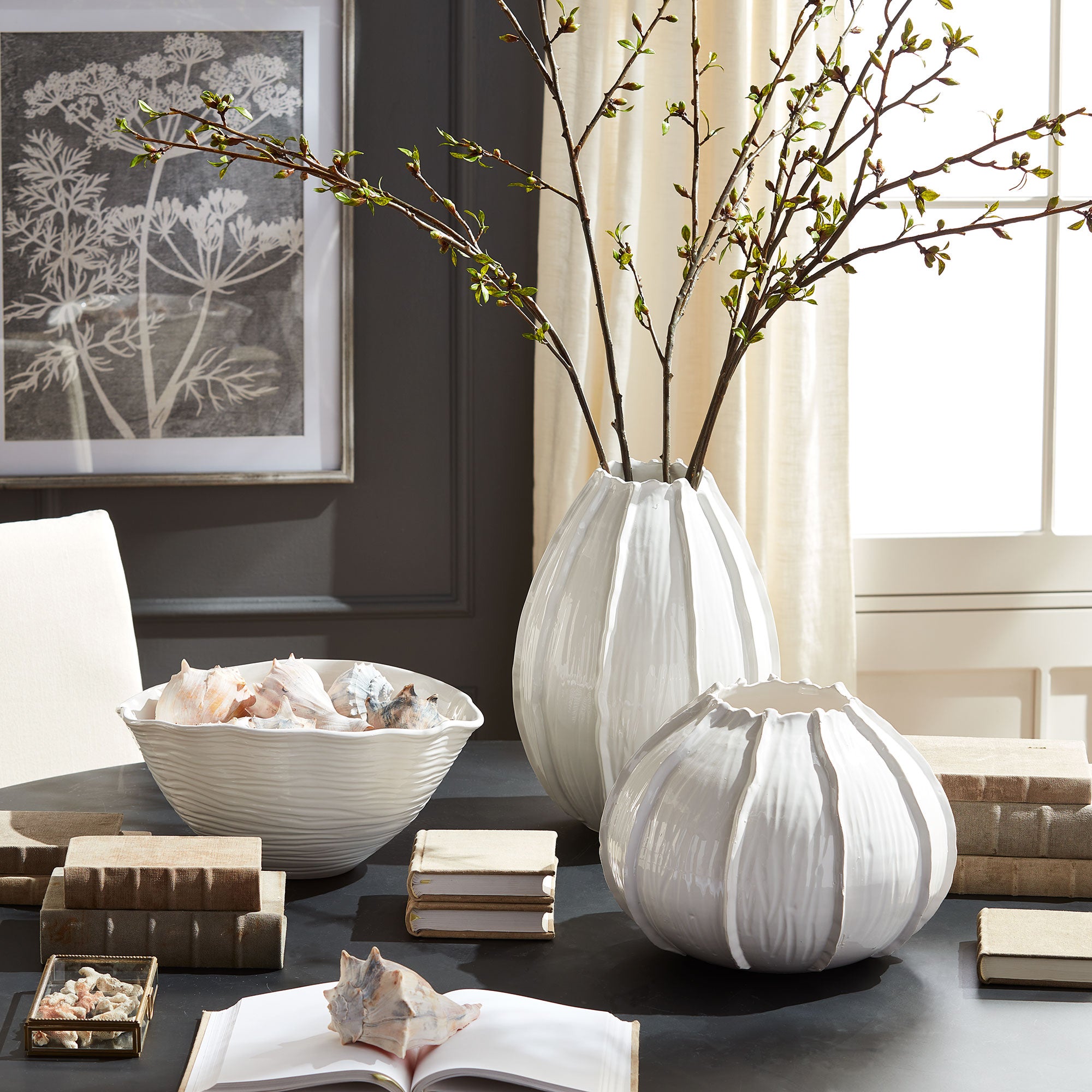 The Savona Vase is handmade in Tuscany, Italy. With classic Italian craftsmanship passed down through generations, every piece is a true original. Sealife-inspired, each detail is sculpted by artisans tools. Designed in grand scale, it is a real masterpiece for feature table, kitchen island or mantel.