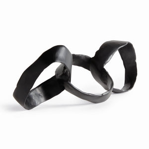 This cast aluminum objet is a modern take on the oversized chain link trend. Hand crafted using a centuries old sand-cast method, a striking accent for coffee table, console or bookshelf.