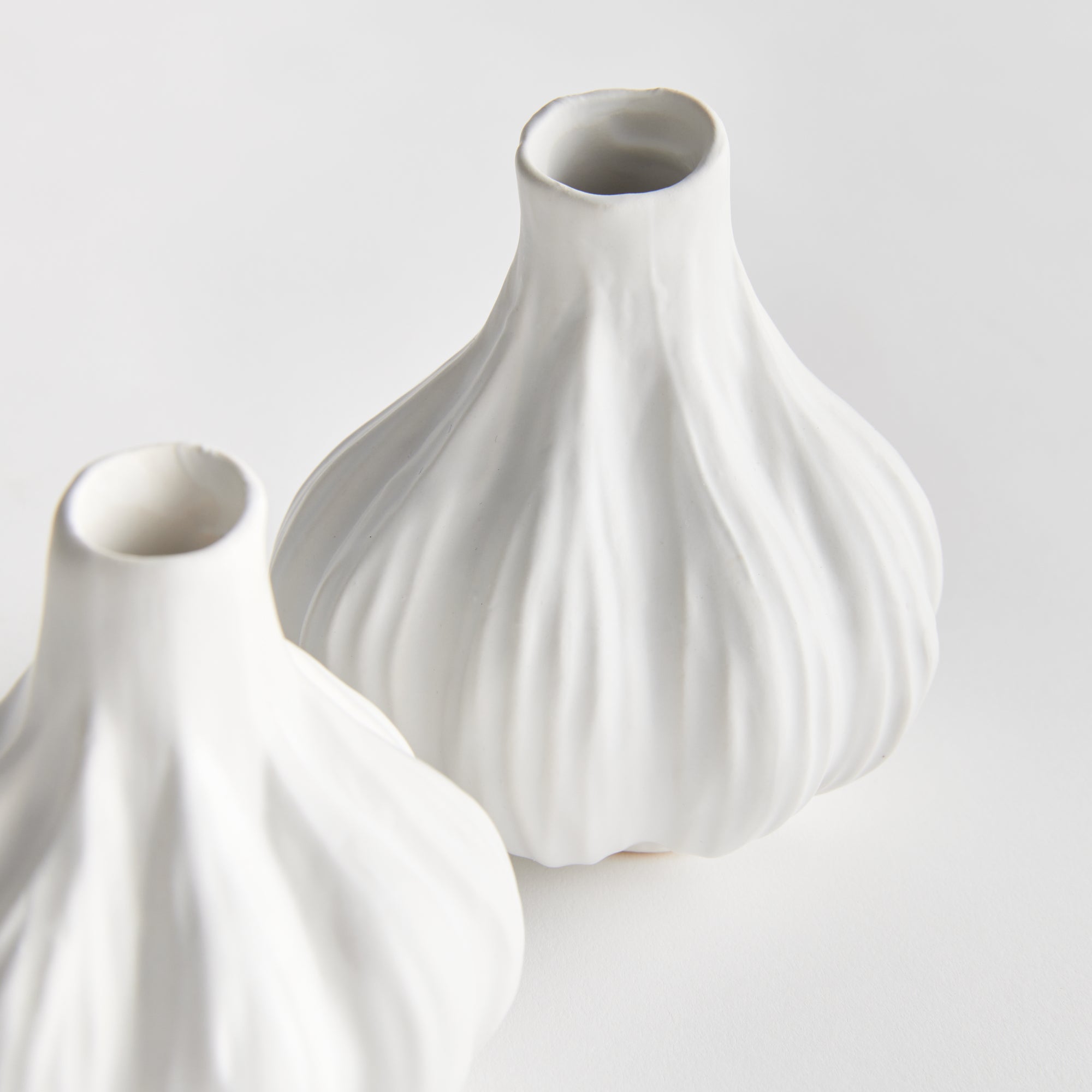With a sculpted body and thickly-applied reactive glaze, this nature-inspired set of bud vases is a work of art. The hand-finished details give it an artisan's touch. Add a few faux stems or display as is. Simply gorgeous.