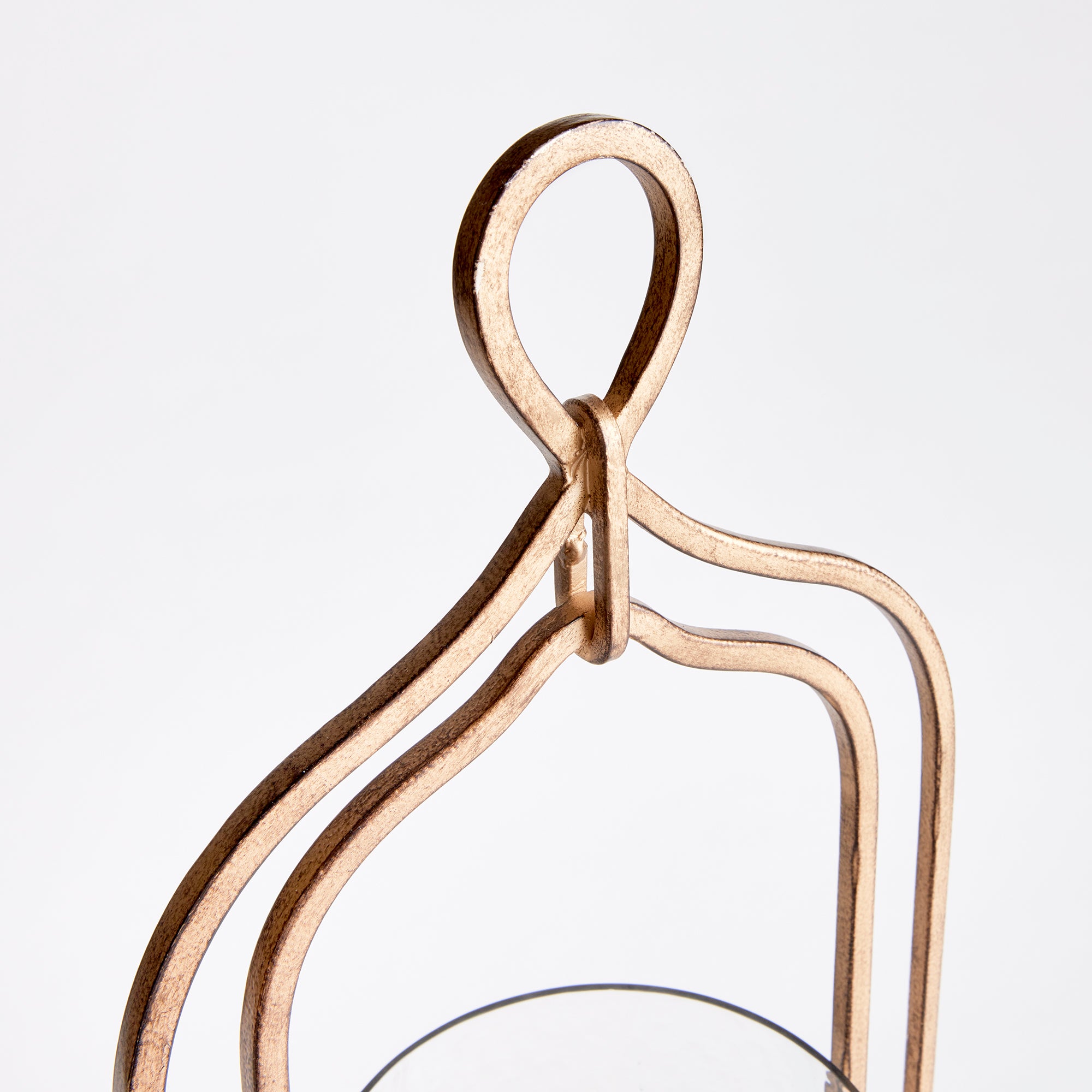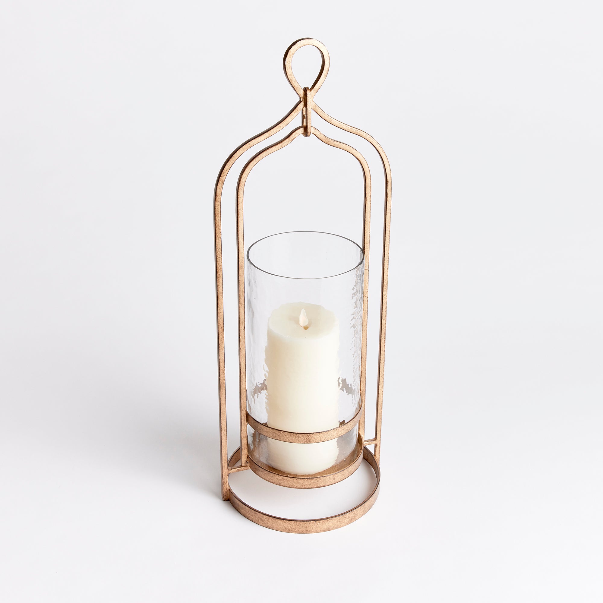 Lyrical in form, yet substantial in cast aluminum, this hurricane also features hammered glass. Topped off with a decorative, yet functional loop handle, it is at home in the transitional to modern setting.