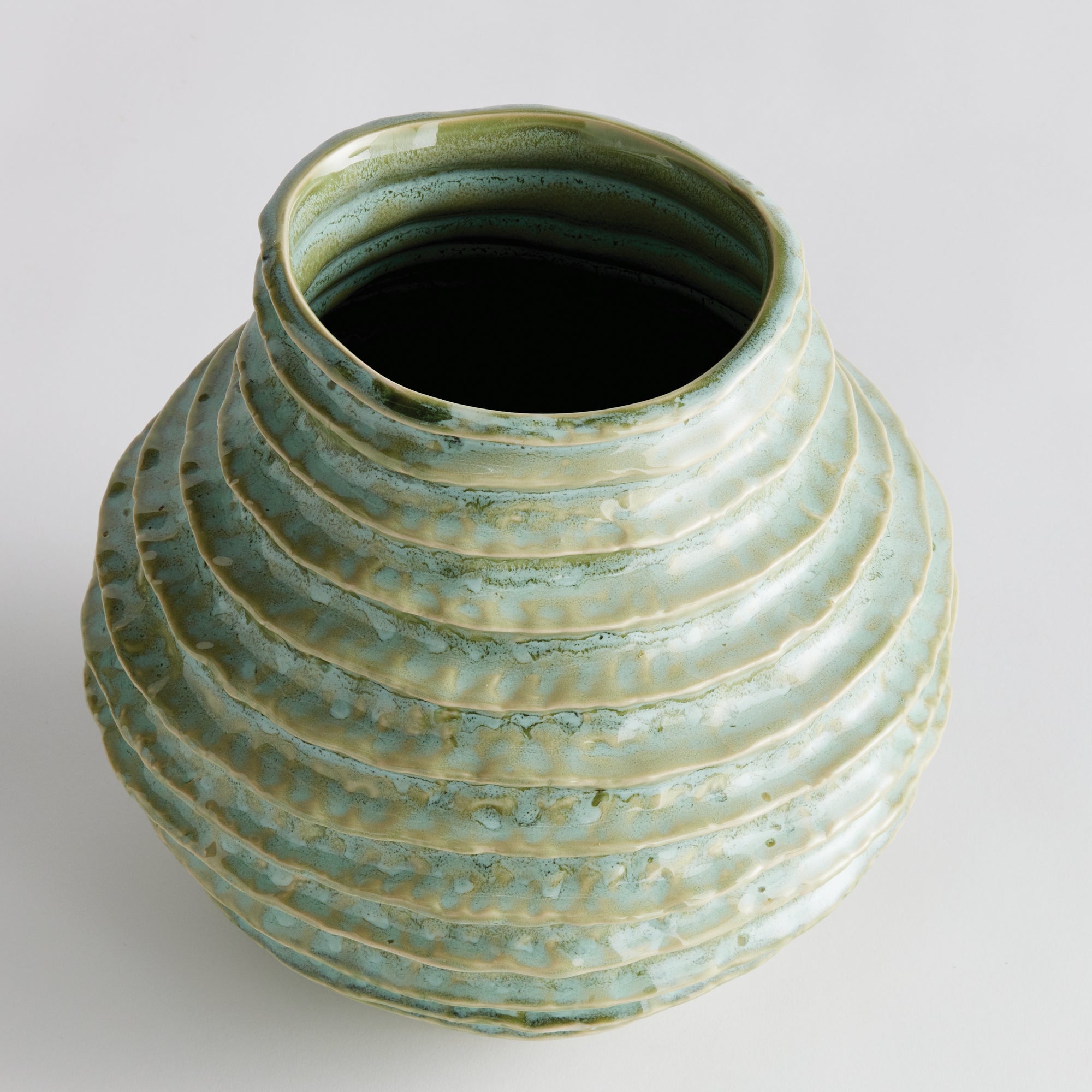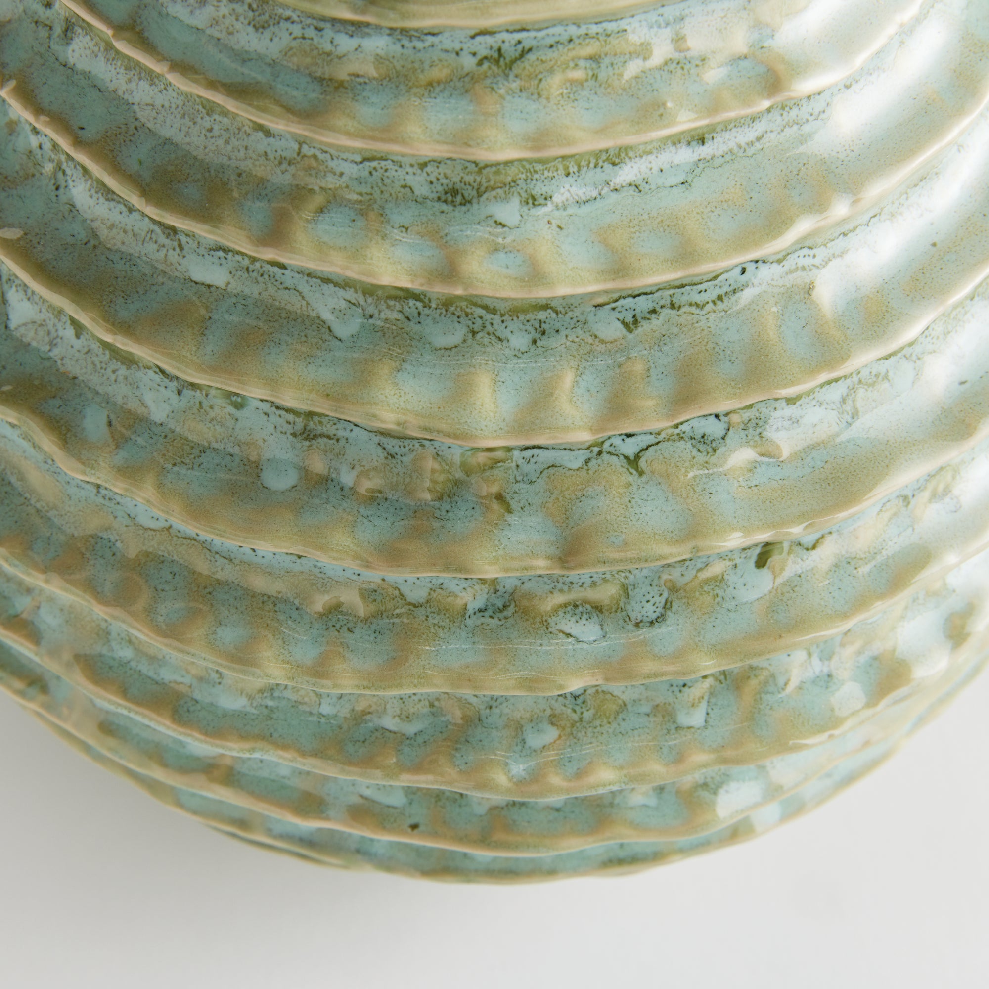 With a reactive glaze and hand finished ribbing detail, this charming sage green vase is a great find. Add a few faux stems or display as is for a simplified look.