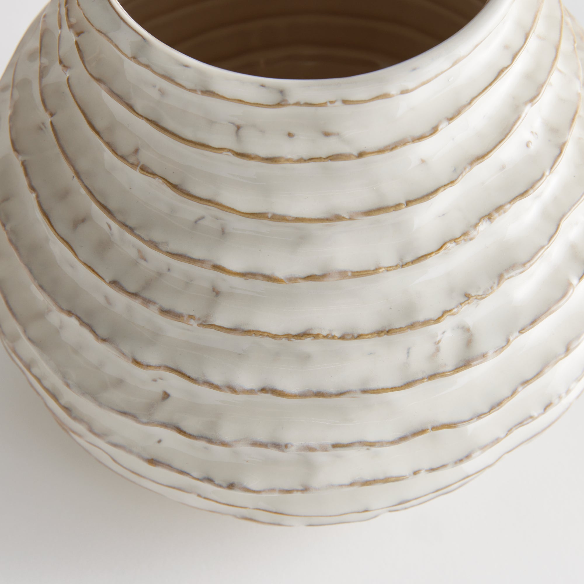 With a reactive glaze and hand finished ribbing detail, this charming vase is a great find. Add a few faux stems or display as is for a simplified look.