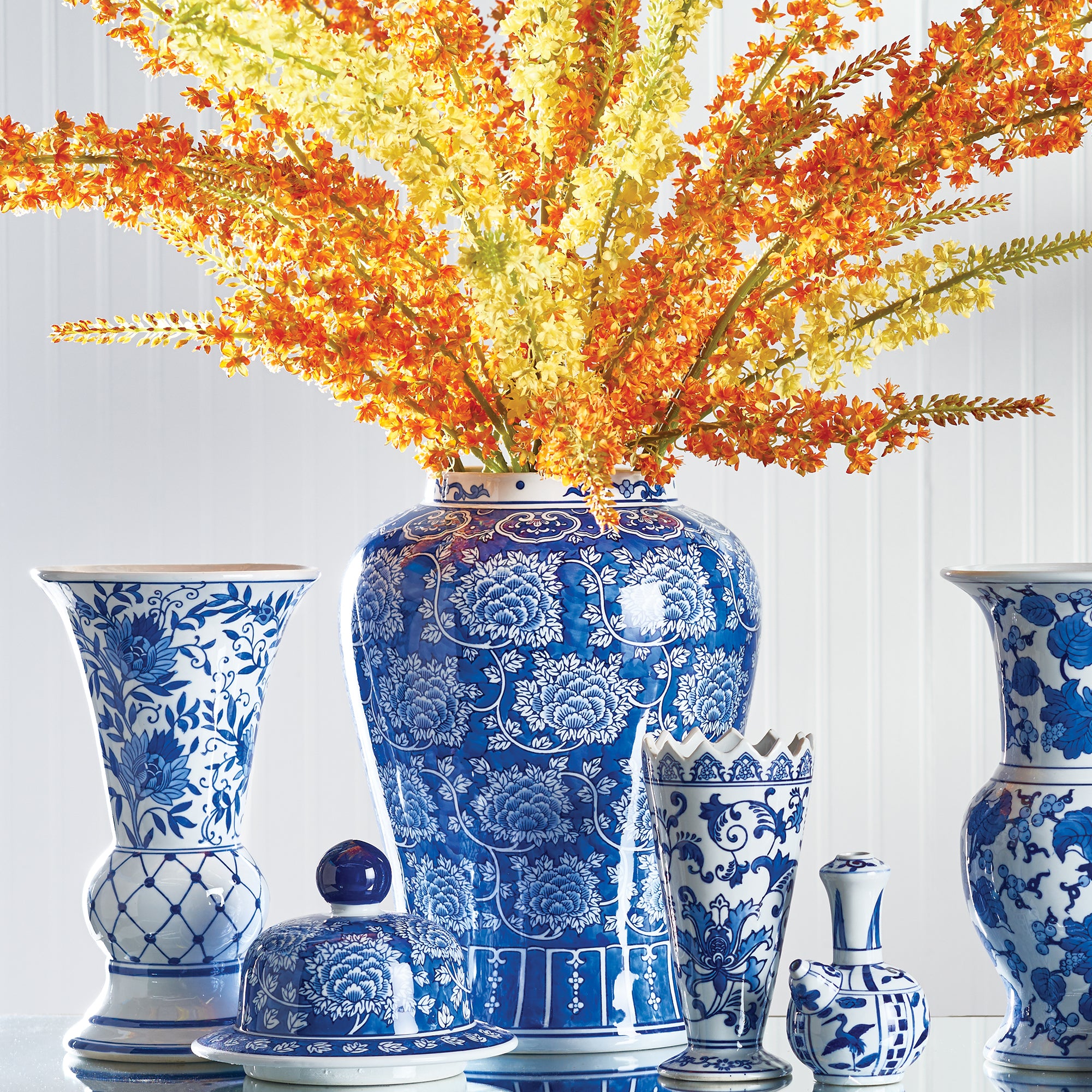 Handcrafted by skilled artisans, each piece is an original and varies in size and color. Dust with dry cloth. Protect fine furniture by lining the interior of the pottery when necessary. Decorative interior use only.