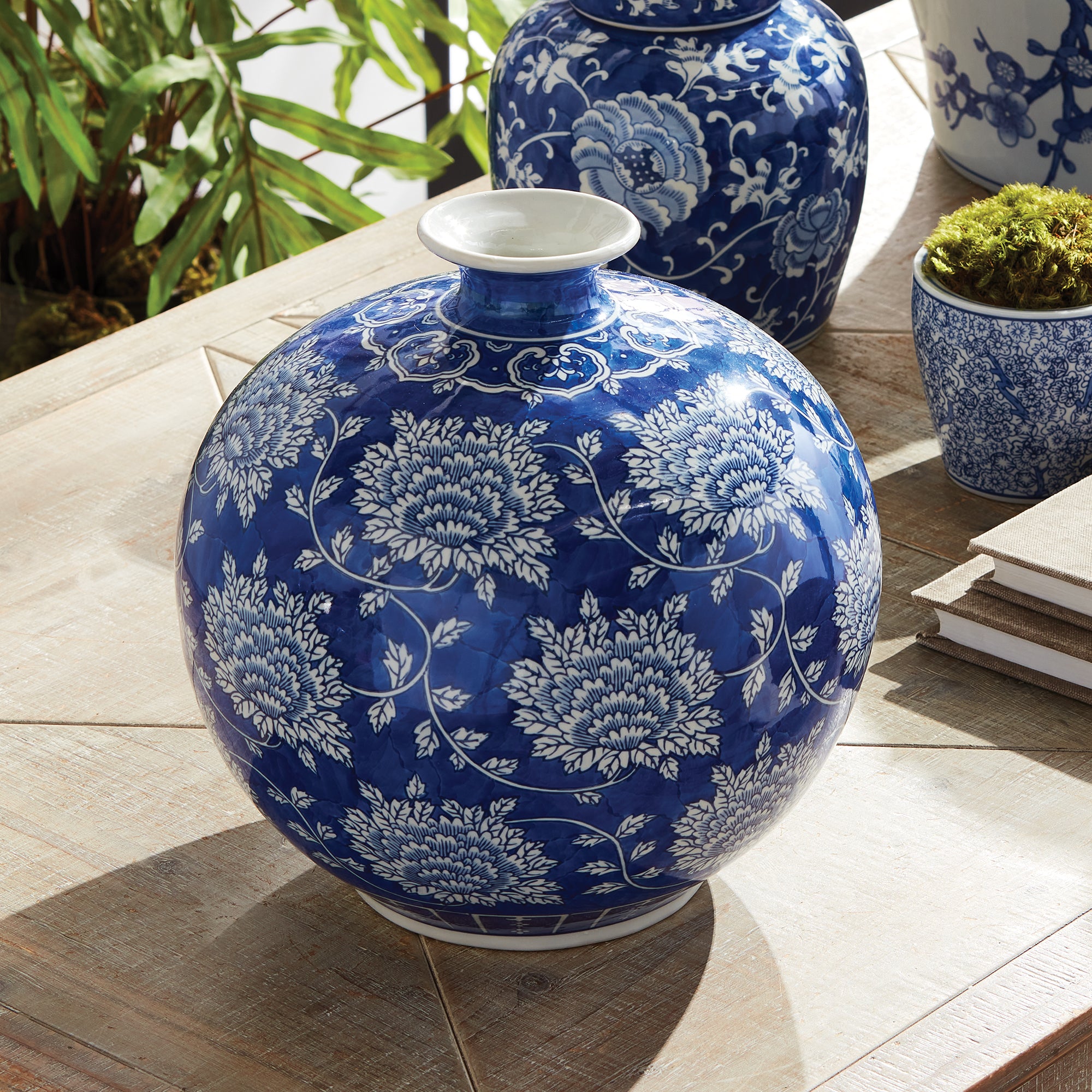 Handcrafted by skilled artisans, each piece is an original and varies in size and color. Dust with dry cloth. Protect fine furniture by lining the interior of the pottery when necessary. Decorative interior use only.