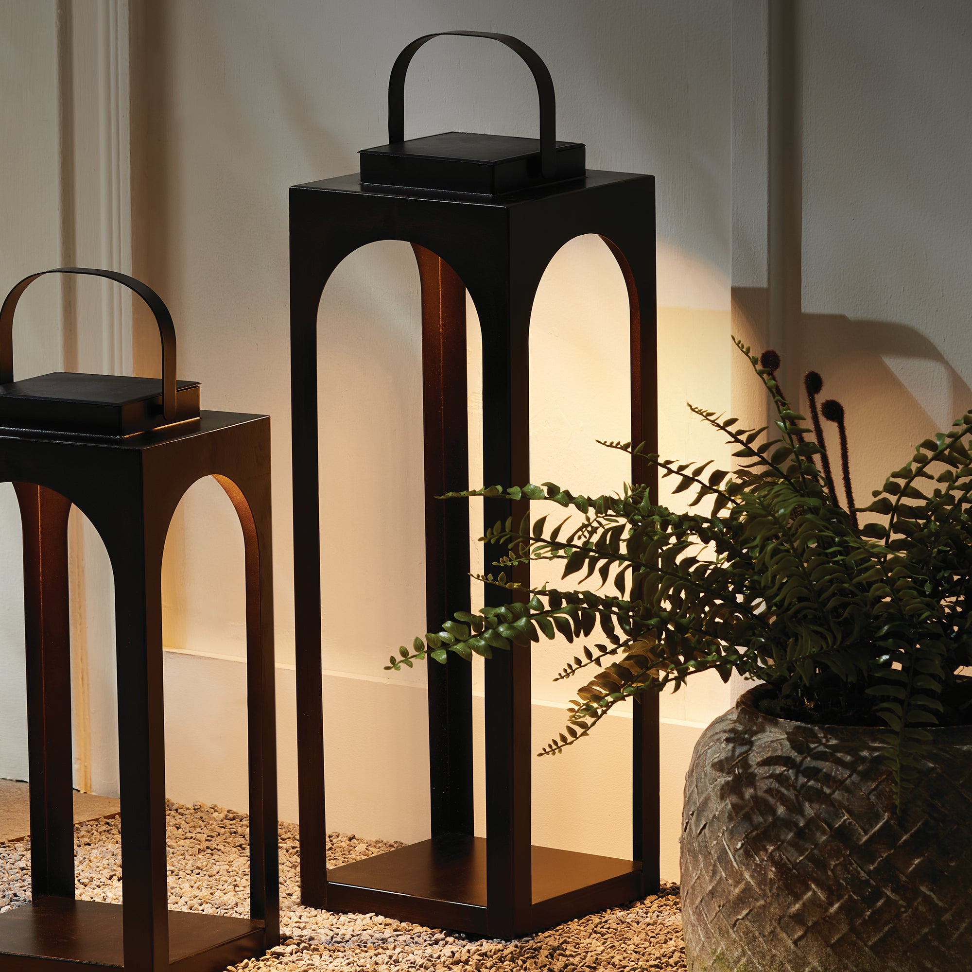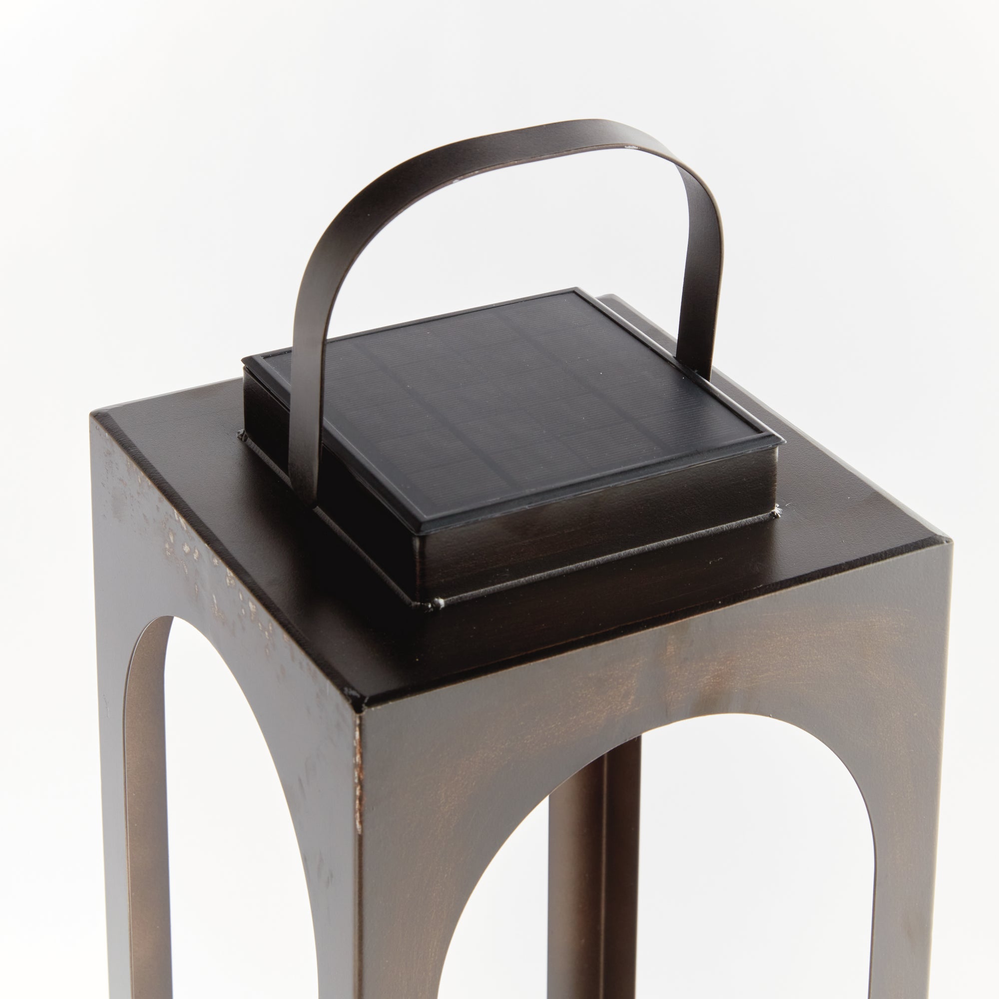 Illuminate the evening with the energy of the sun. The Brooks Solar LED Lantern is a classic look with traditional lines. It is designed with a solar panel built in to the top that casts a warm LED light below. Add some greenery at the base for a fully styled look. Just perfect for covered porch, entryway or lanai.