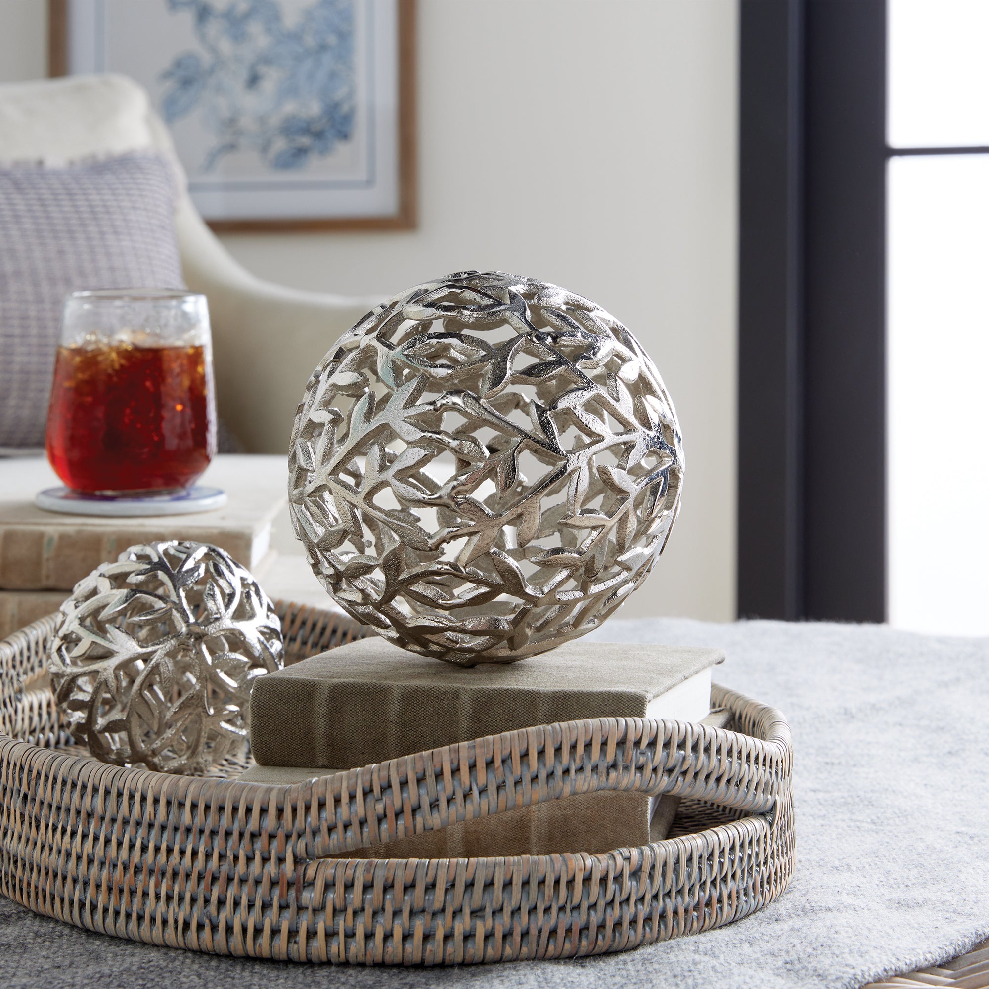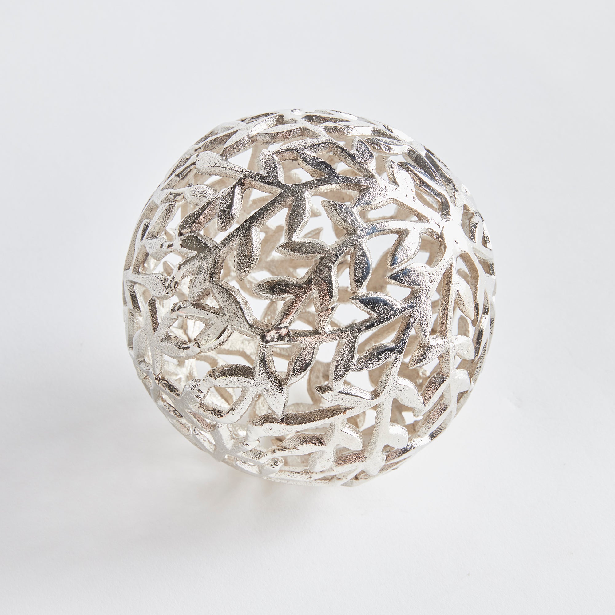 A whimsical, flowing vine motif makes up the open pattern of this decorative orb. Tuck into a bookshelf, or fill a bowl with a few for an elevated look.