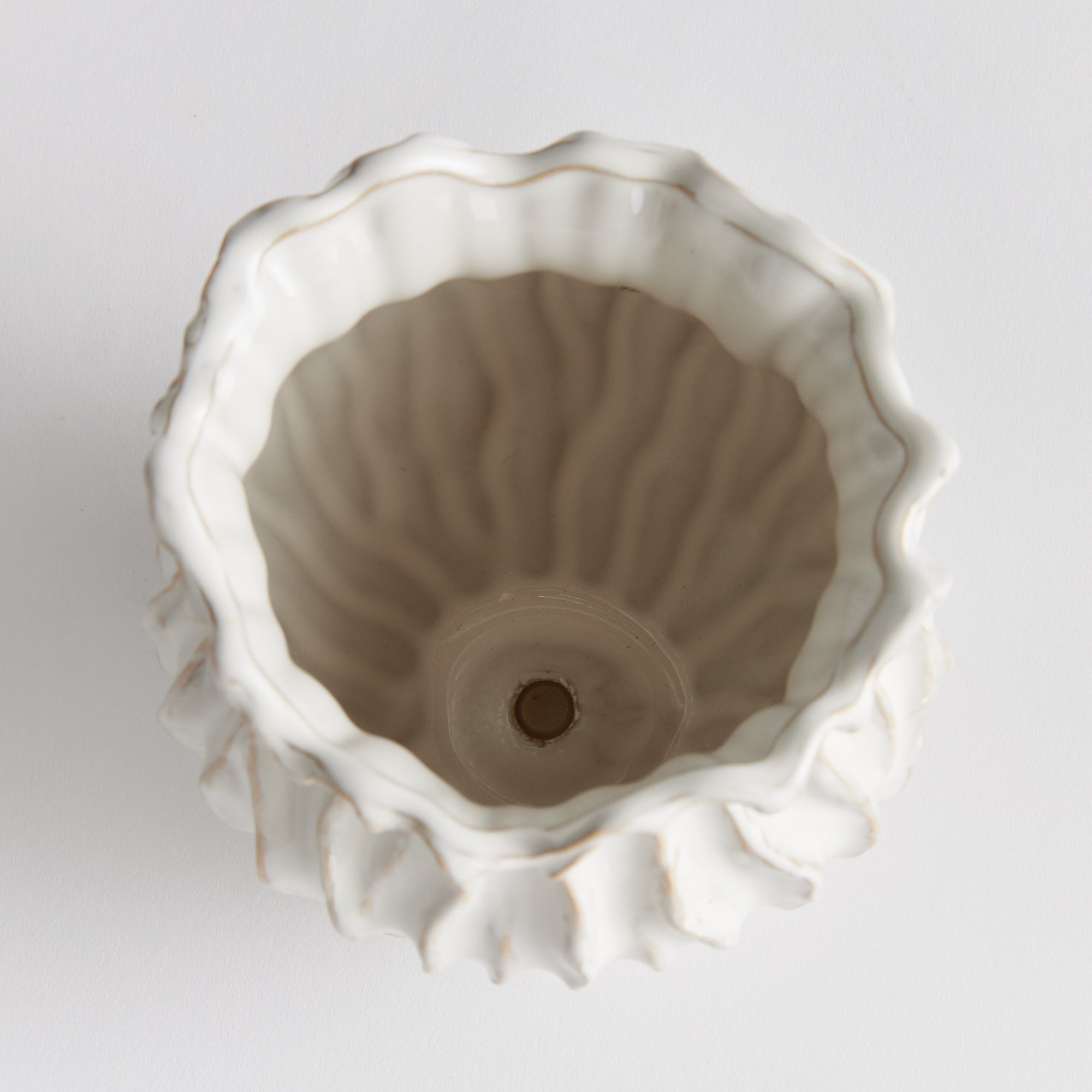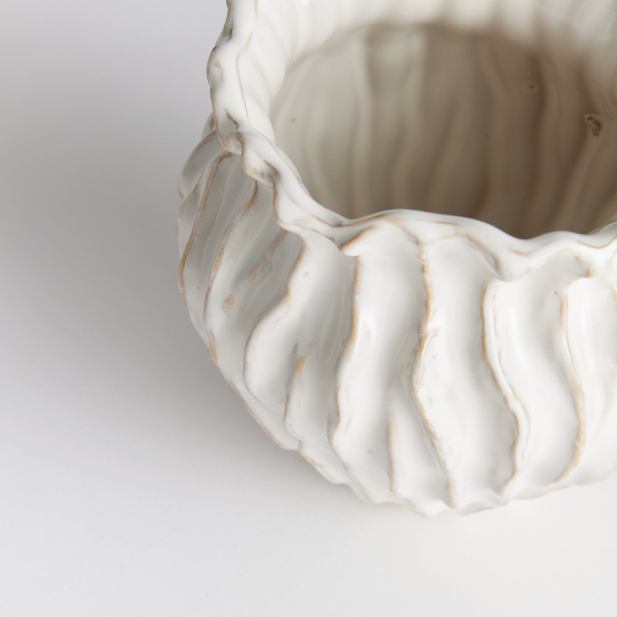 With a sculpted body and thickly-applied reactive glaze, this sculptural pot is a work of art. The hand-finished details give it an artisan's touch. Add a lush green plant or delicate orchid and enjoy. Simply gorgeous.