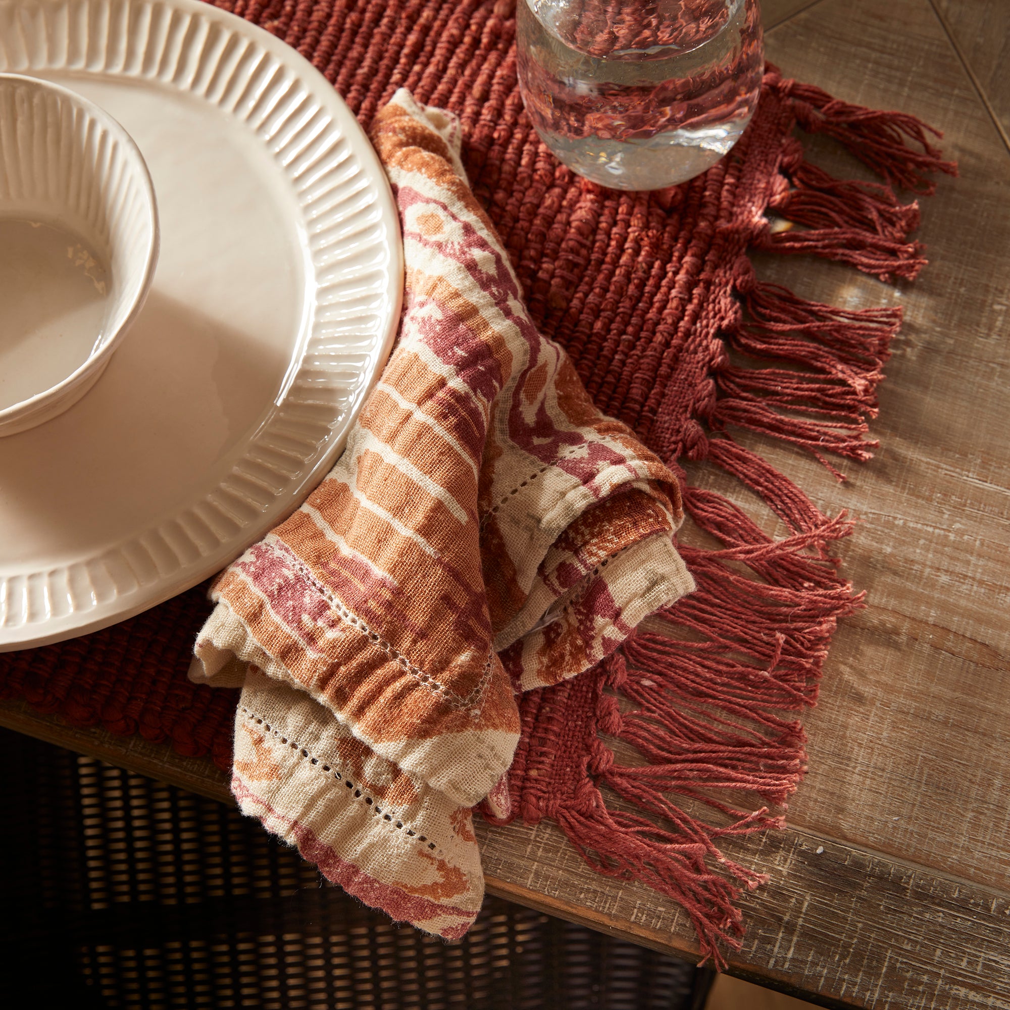 Interior use. Machine wash cold, gentle cycle. Do not bleach. Line dry. Warm iron. Do not dry clean.