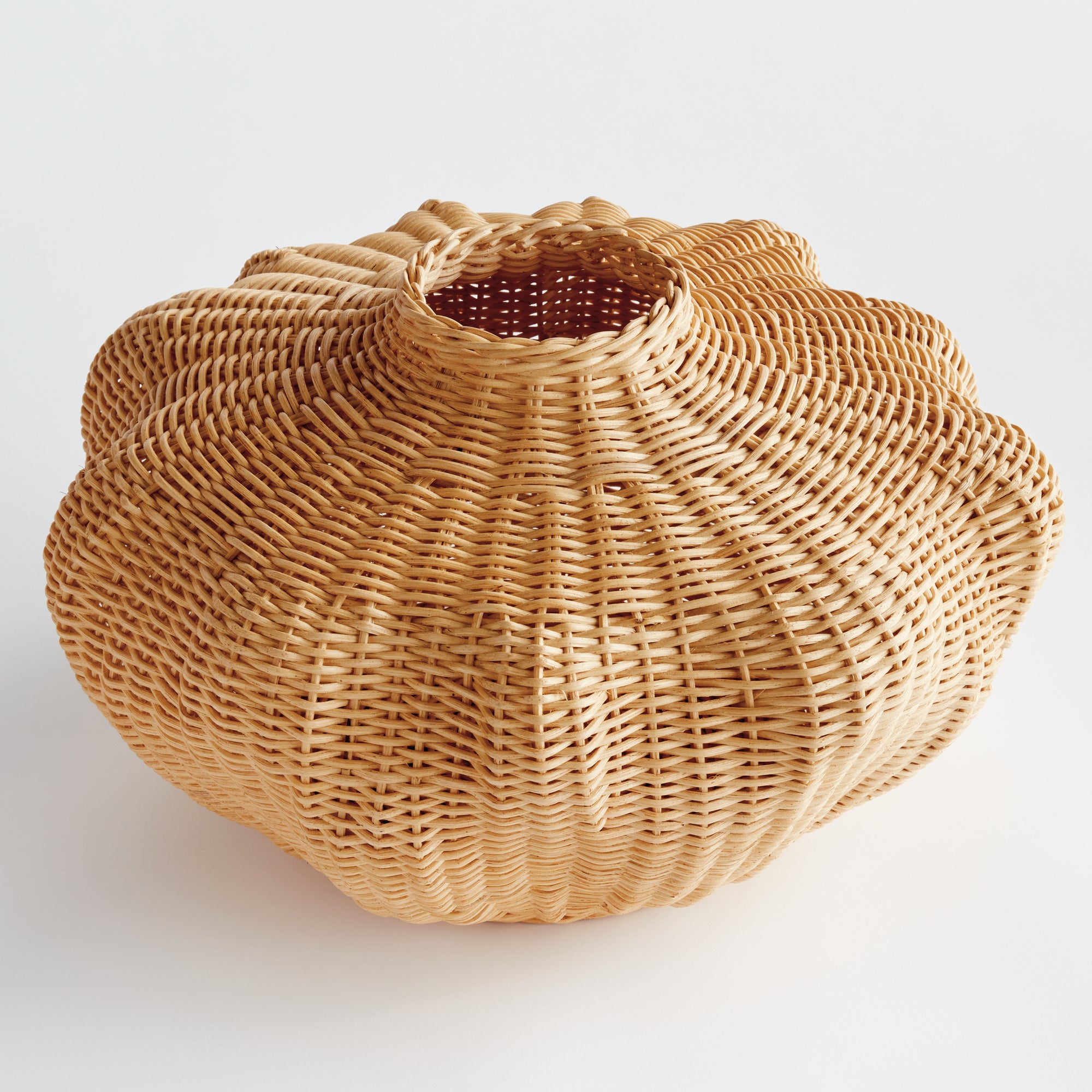 This palm rattan woven vase features an undulating shape wrapped around a rigid wire frame. It takes a masterful weaver to achieve this level of artistry. A stunning accent displayed on its own, or add a faux stem to really bring the drama.
