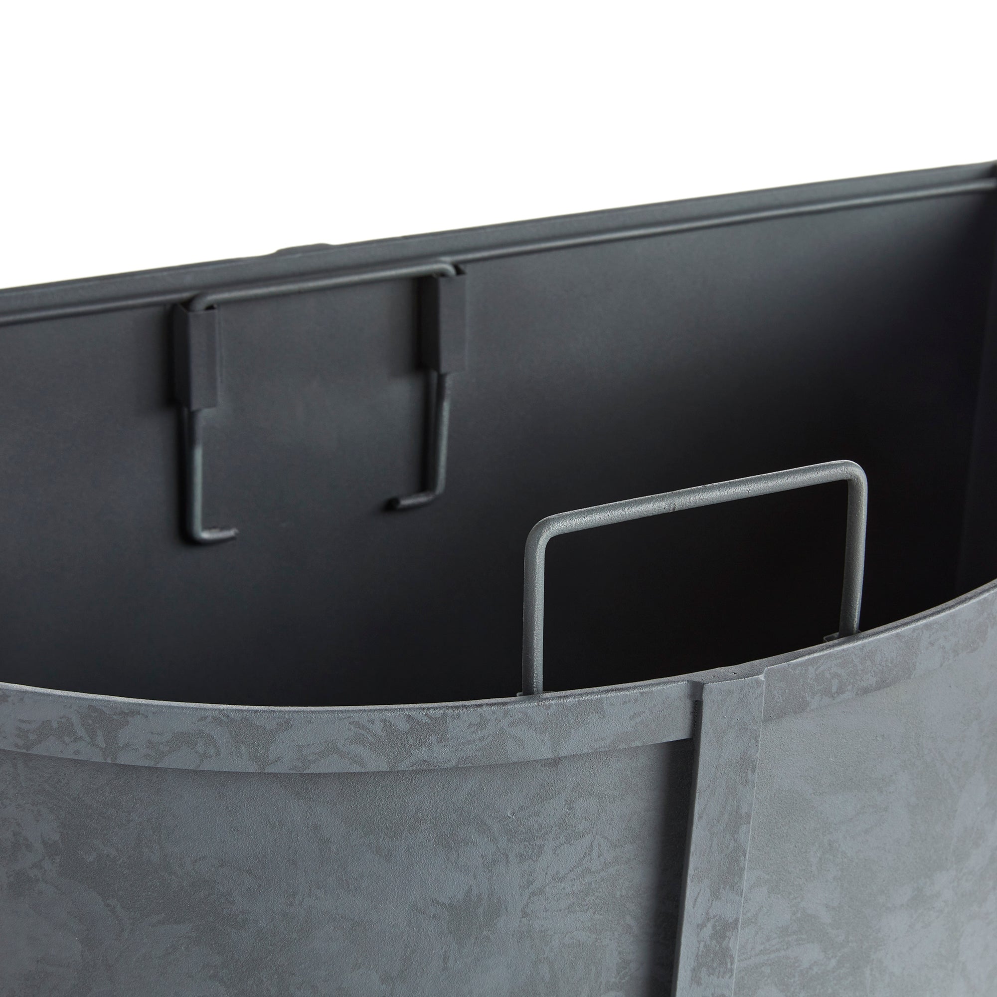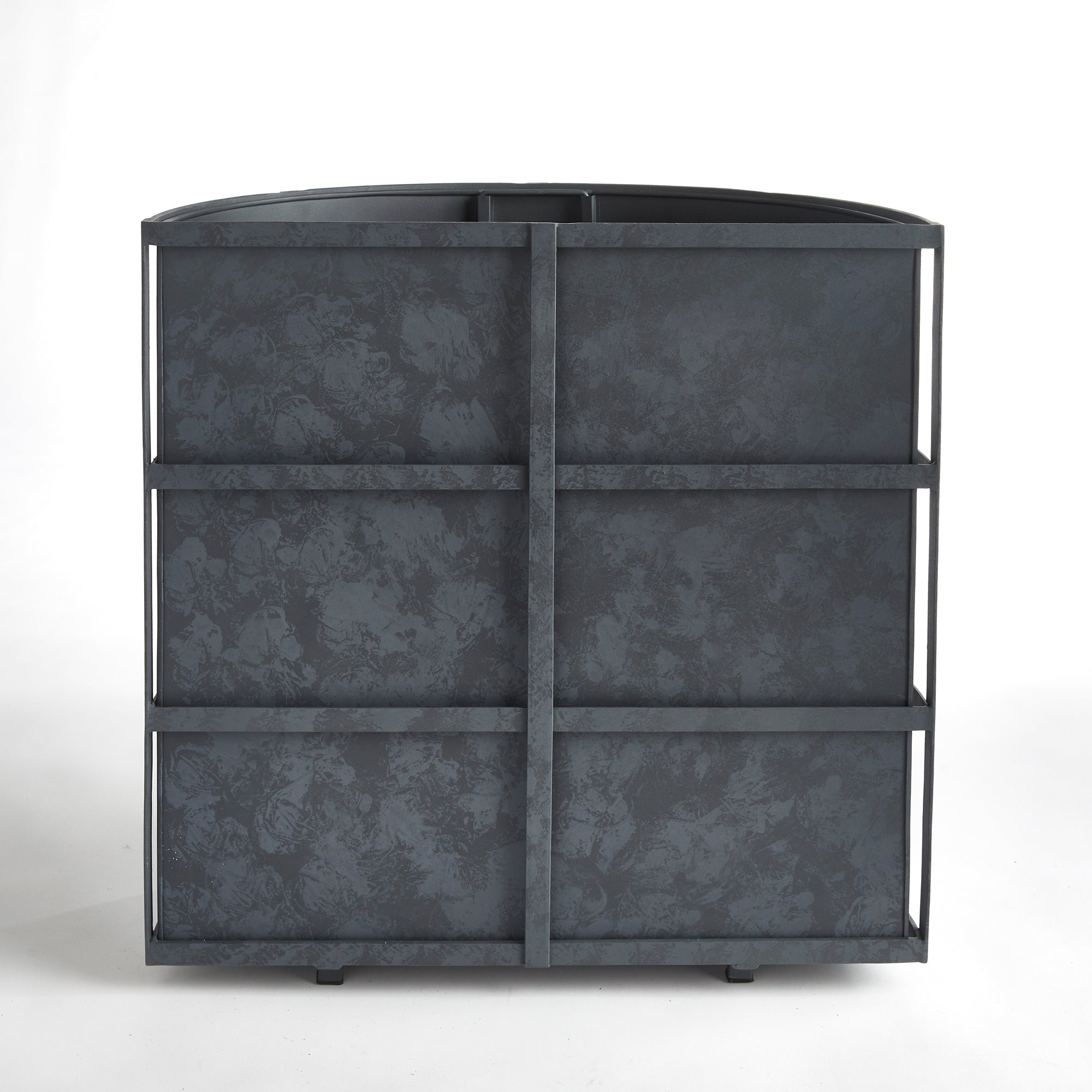 Raised off the ground for proper drainage, this well-scaled demilune planter is the modern interpretation of an antique planter. It is fully powder-coated, and has a removable liner with recessed handles. A statement piece for between windows, garage doors and patio.
