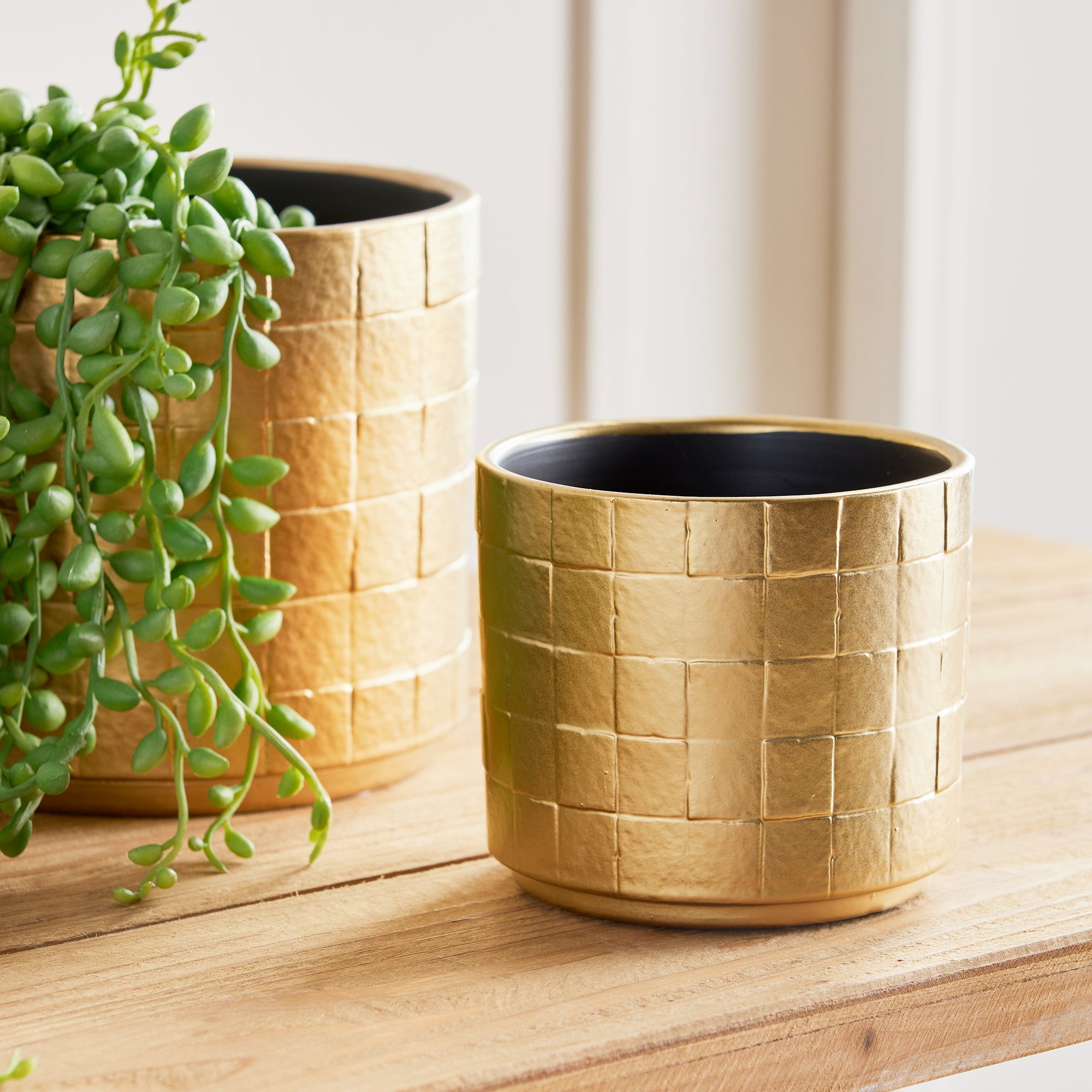 With a quilt-like façade, this set of two pots are an eclectic look. The matte gold finish is what truly makes them shine. Fill with your favorite greens or florals and watch them swoon.