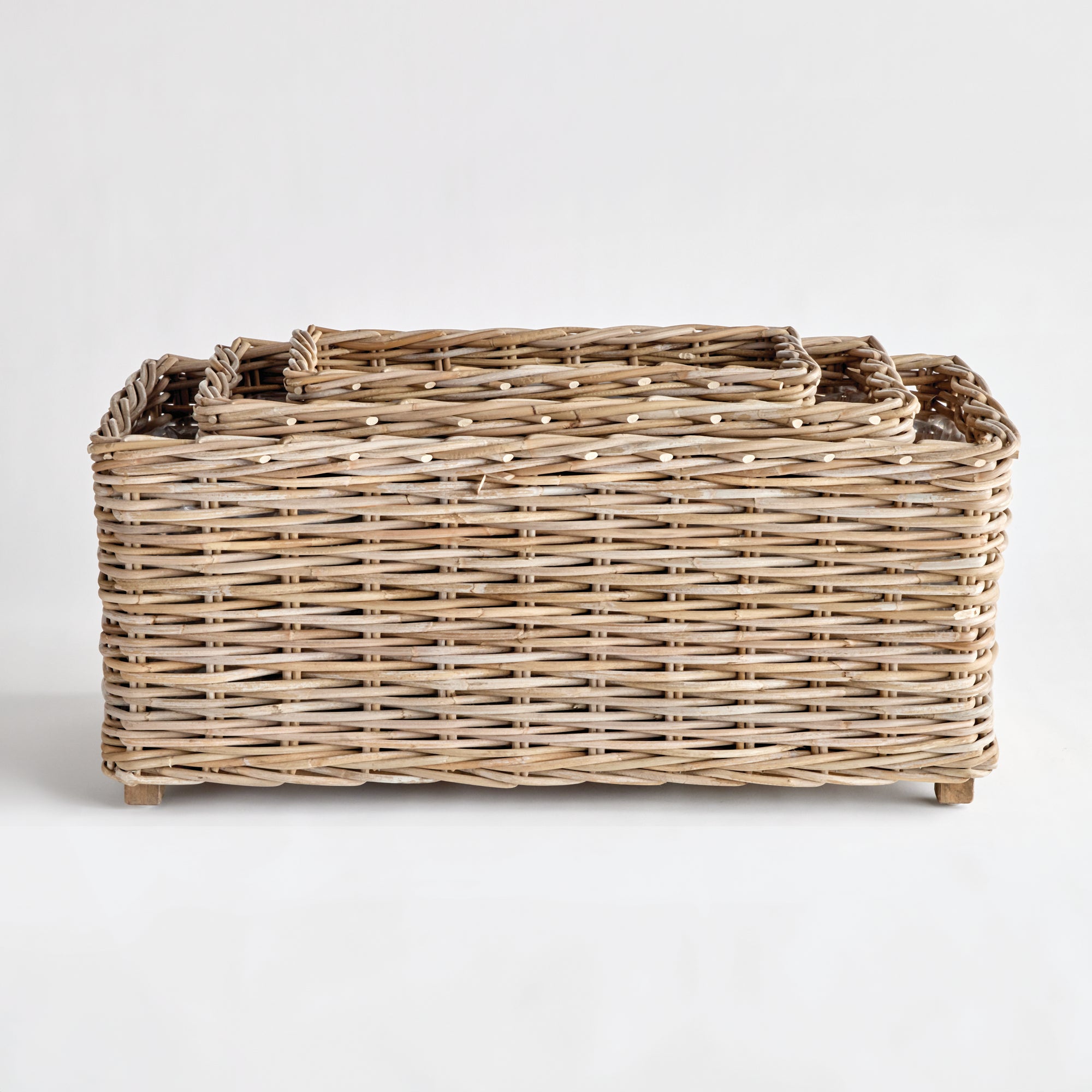 These overscale rectangular planters will steal the show! Designed with a solid wood frame for stability, and elevation, and fitted with plastic liners to keep them clean and dry. This set of three make a stunning coordinating set for your creative planting.