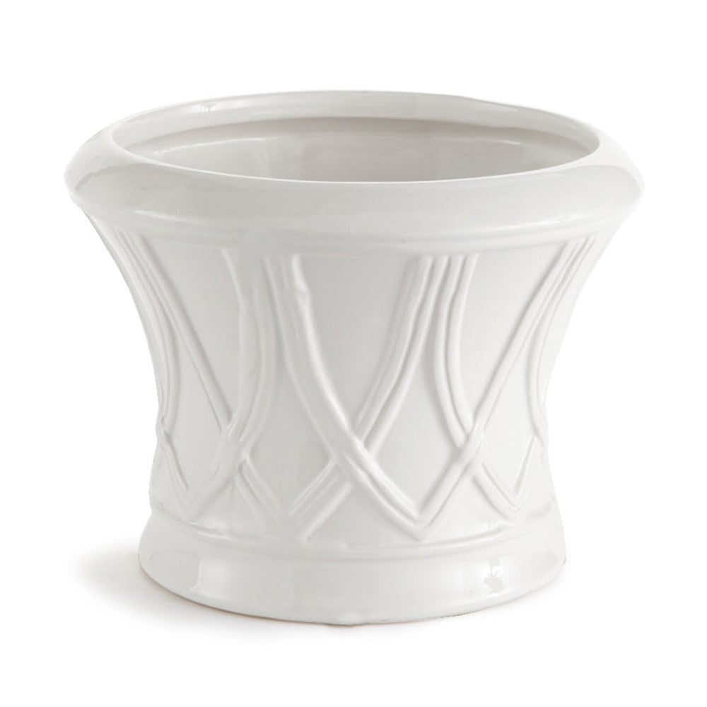 Use as cachepot or plant directly into. Protect fine furniture by lining interior of pot. Protect from frost and hard freeze.