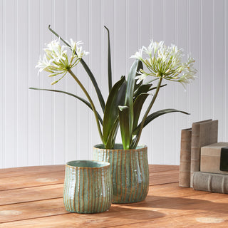 Use as cachepot or plant directly into. Protect fine furniture by lining interior of pot. Protect from frost and hard freeze.
