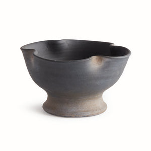 This footed bowl is hand thrown and formed by an artisans touch. But the real story is in the glaze. The dynamic texture is referred to as a 'cold finish', when the piece is not glazed a second time, creating a distinctive hand rubbed, matte finish. Simply stunning.